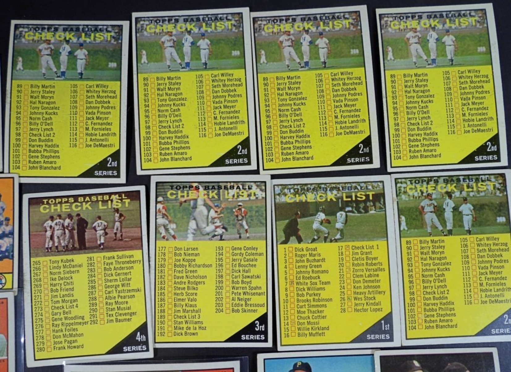 OVERALL IN EX/VGEX CONDITION. ONE CHECKLIST HAS HAS SOME MARKS CROSSED OFF. DUPLICATES OF 2ND SERIES CHECKLIST.SMALL TEAR ON ONE CARD. REST UNMARKED