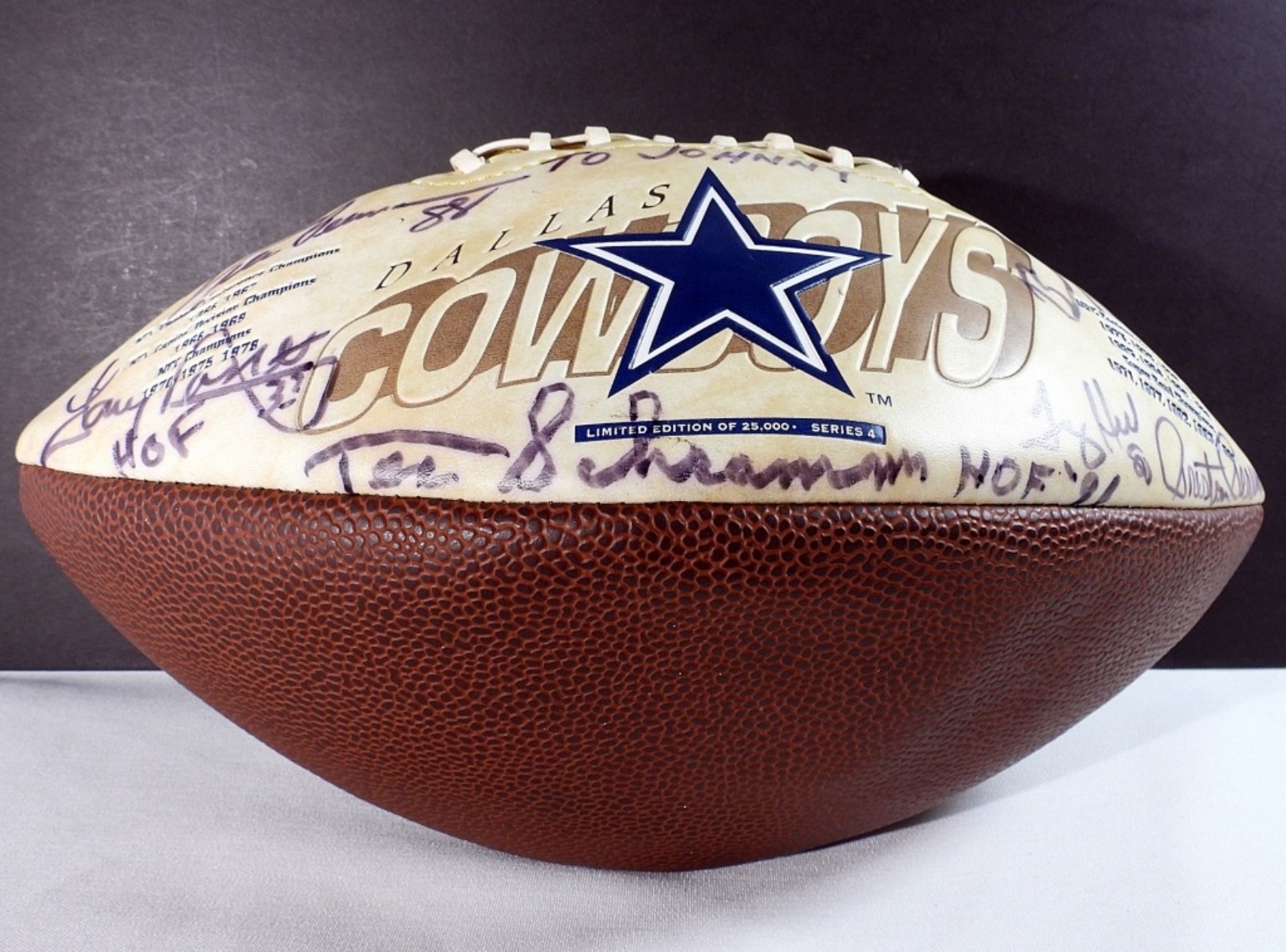 DALLAS COWBOYS 19 SIG. HOF/CHAMPIONS- BOB LILLY #74 (MR. COWBOY), ROGER STAUBACH #12, BILLY JOE DUPREE #89, JETHRO PUGH #75, WALT GARRISON #32, ROBERT NEWHOUSE #44, DREW PEARSON #88, TONY DORSETT #33, TEX SCHRAMM,