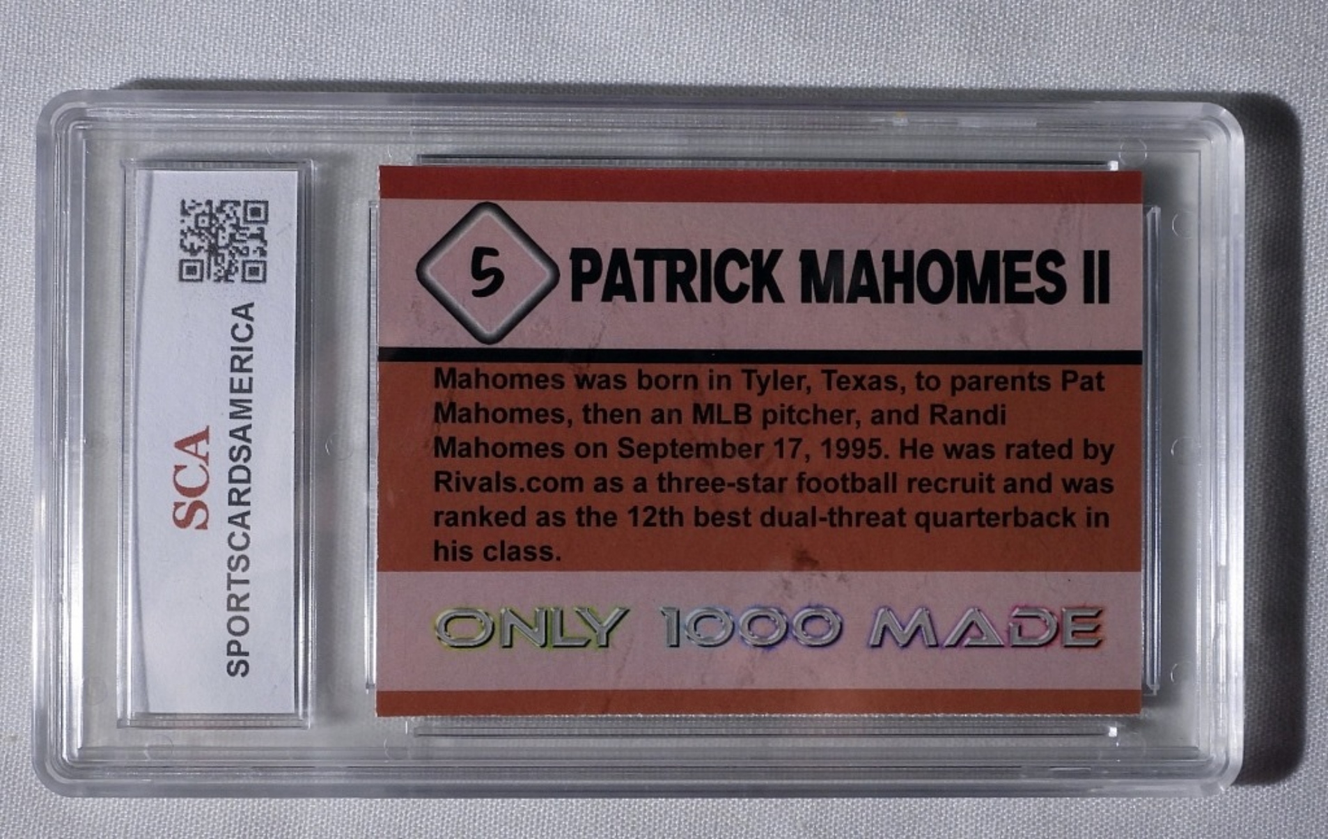 2016 ROOKIE #5 PATRICK MAHOMES CARD- (GEM MINT 10)
