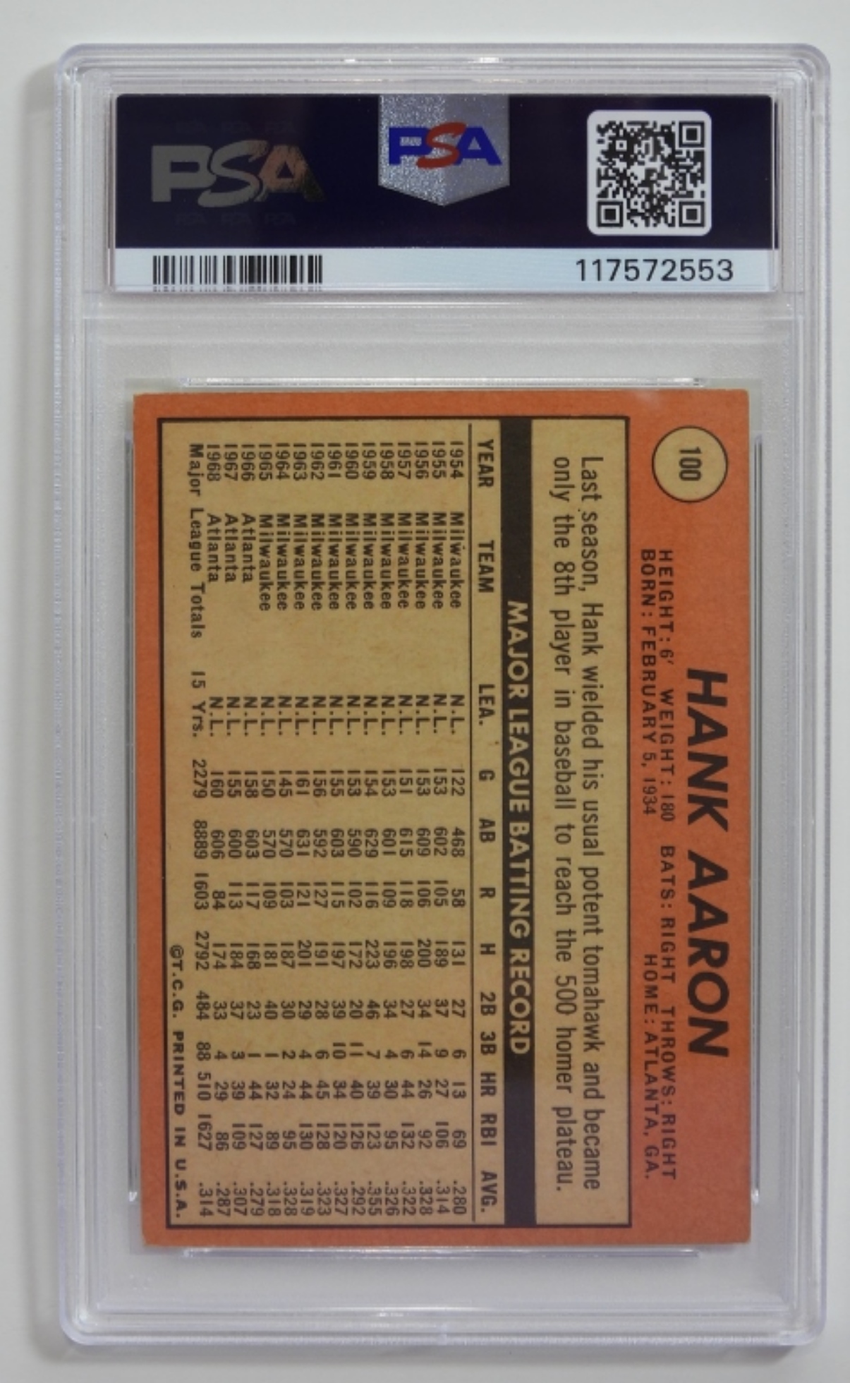 PSA 1969 TOPPS HANK AARON #100 EX 5, 117572553