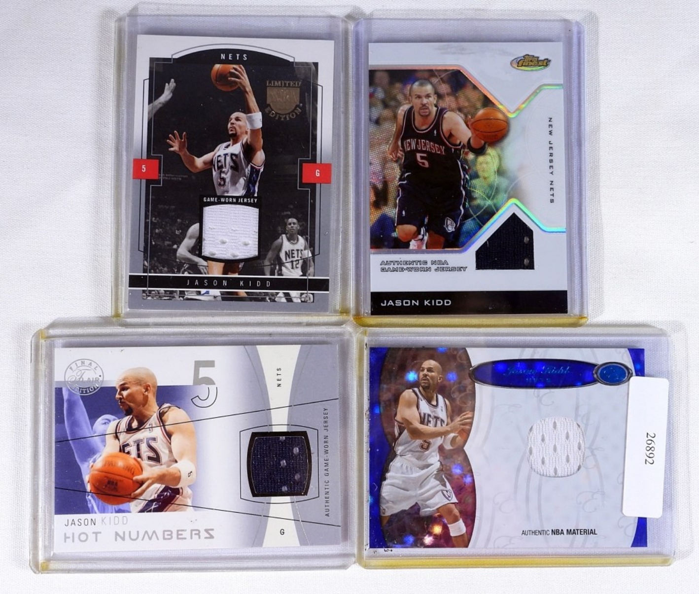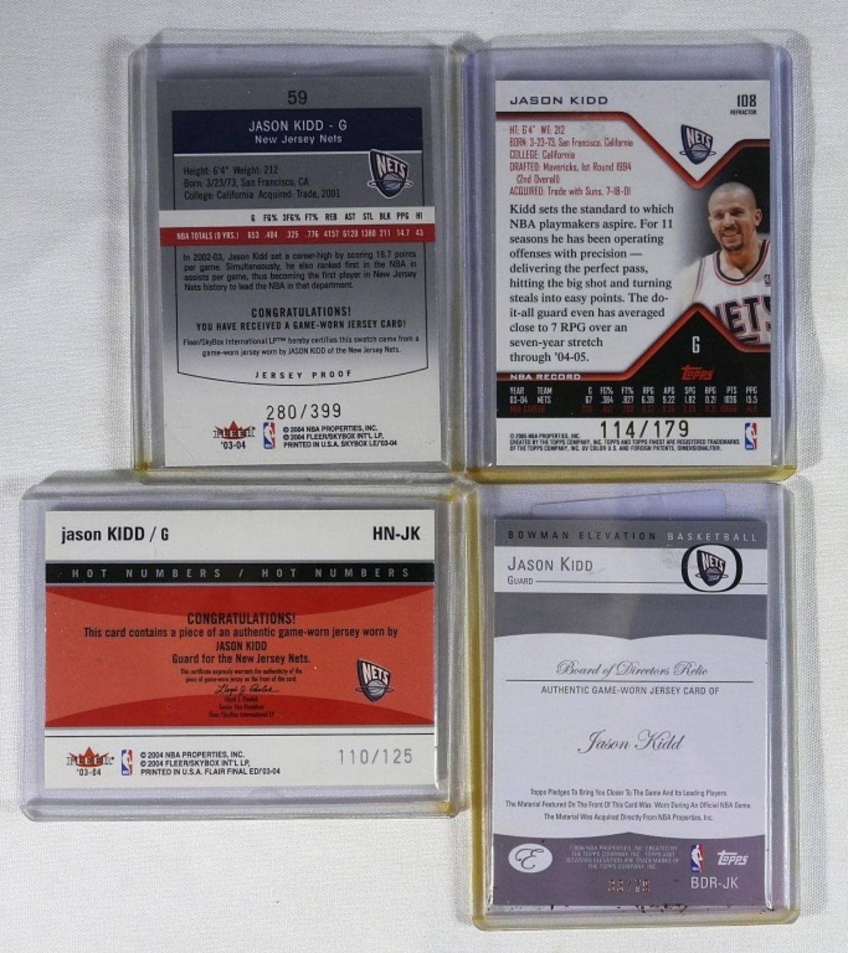 (4) JASO N KIDD AUTO JERSEY CARDS- 2004 FLEER, 2005 TOPPS, 2006 TOPPS, 2004 FLEER- (EXMNT) UNVERIFIED