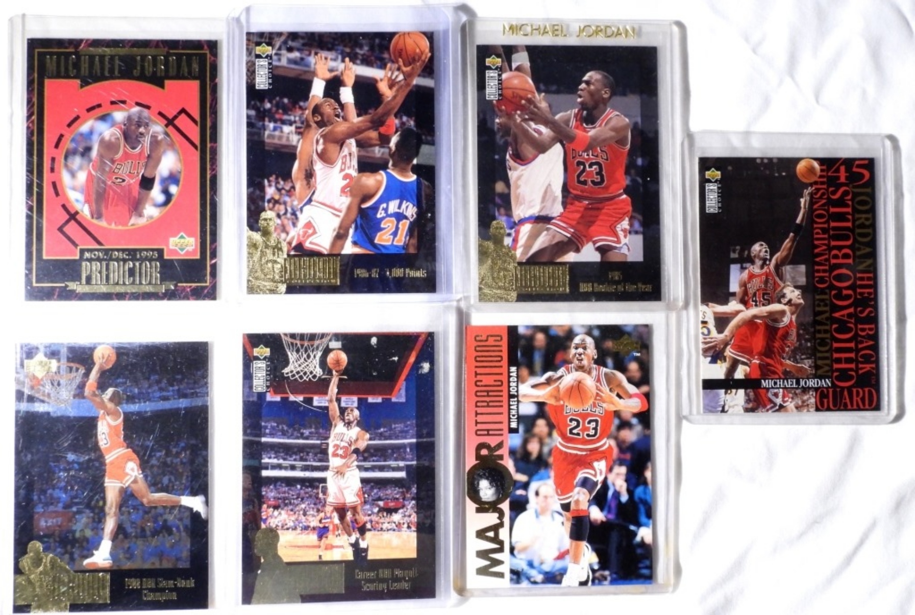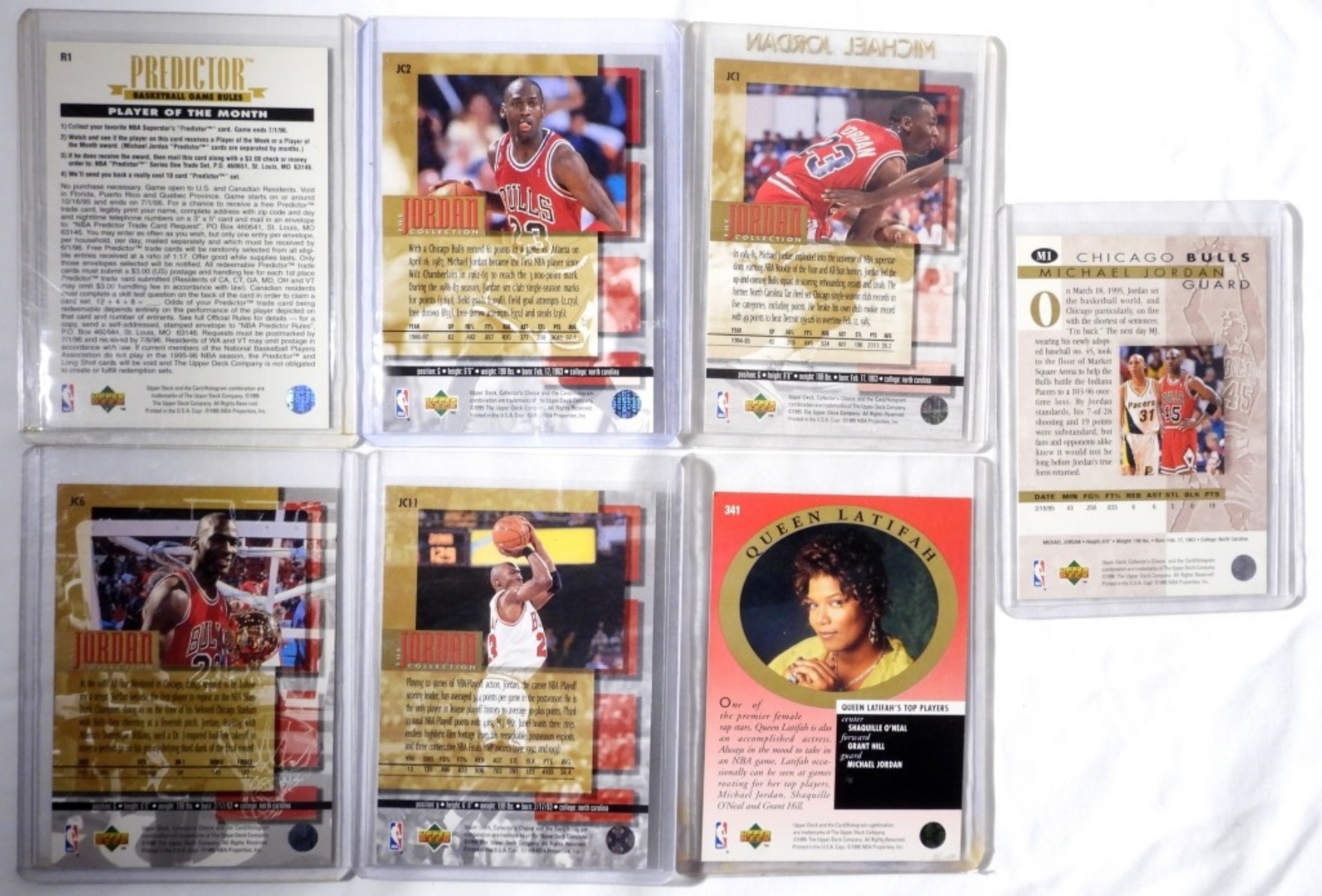 (7) VARIETY MICHAEL JORDAN SPORTS CARD, 1995 (UPPER DECK 341, R1, JC11, JC6, JC2, JC1, M1), (EX)