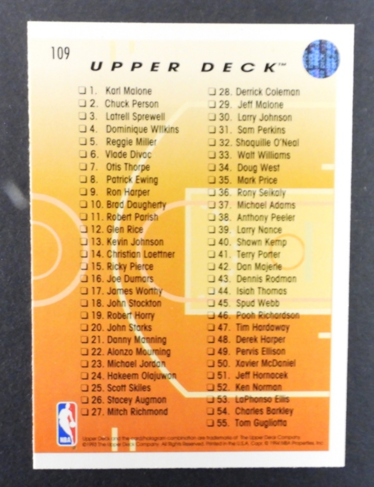 1993 UD PRO VIEW MICHAEL JORDAN CARD #109 (EX) O/C T-B