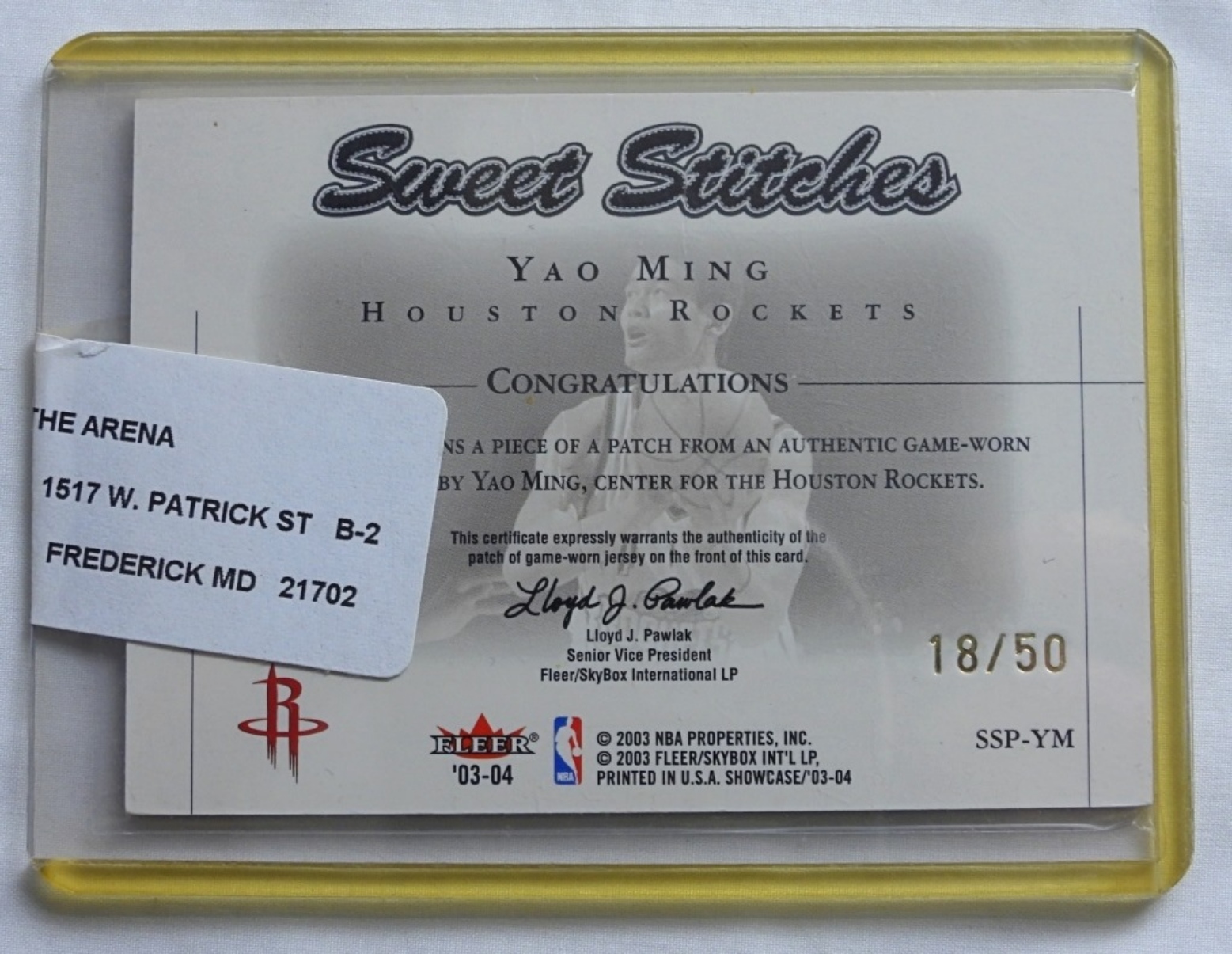 18/50 FLEER SHOWCASE SWEET STITCHES GAME-WORN JERSEY PATCH, 03-04
