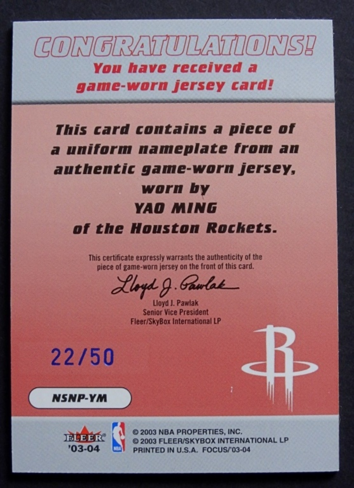 22/50. NSNP-YM, FLEER 03-04, NBA SHIRTIFIED AUTHENTIC GAME WORN JERSEY