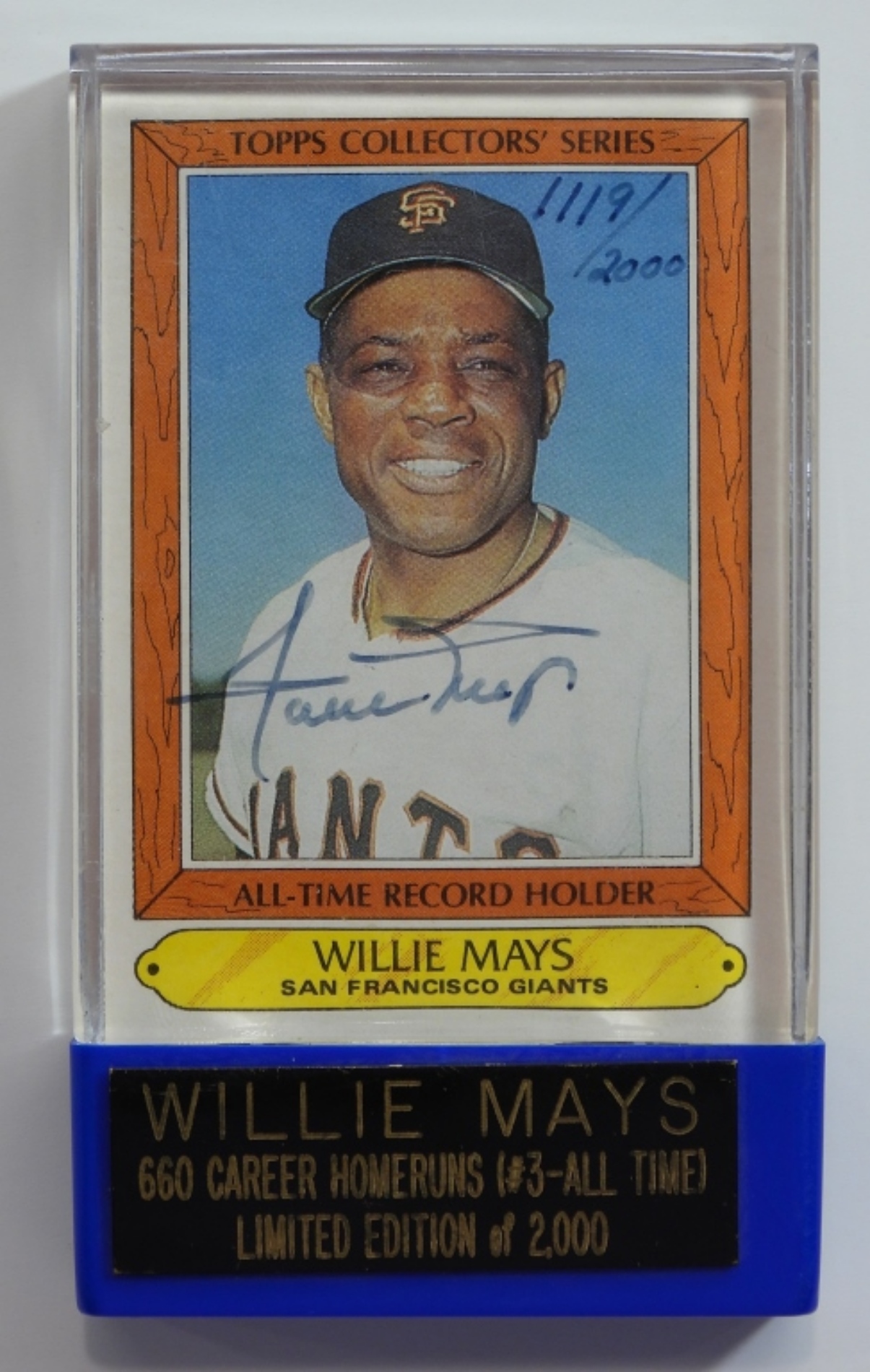 IN CASE WITH PLAQUE WILLIE MAYS 660 CAREER HOMERUNS (#3-ALL TIME) LIMITED EDITION OF 2000, 1119/2000, IN MINT CONDITION