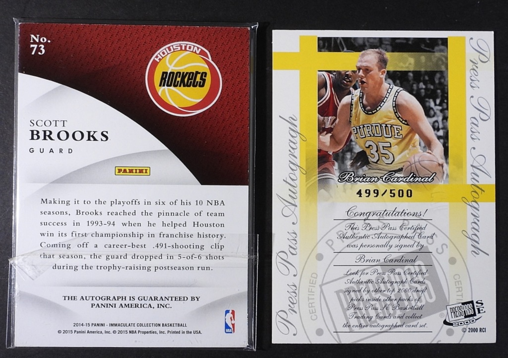 1- PANINI AND 1- PRESSPASS, SCOTT BROOKS, BRIAN CARDINAL