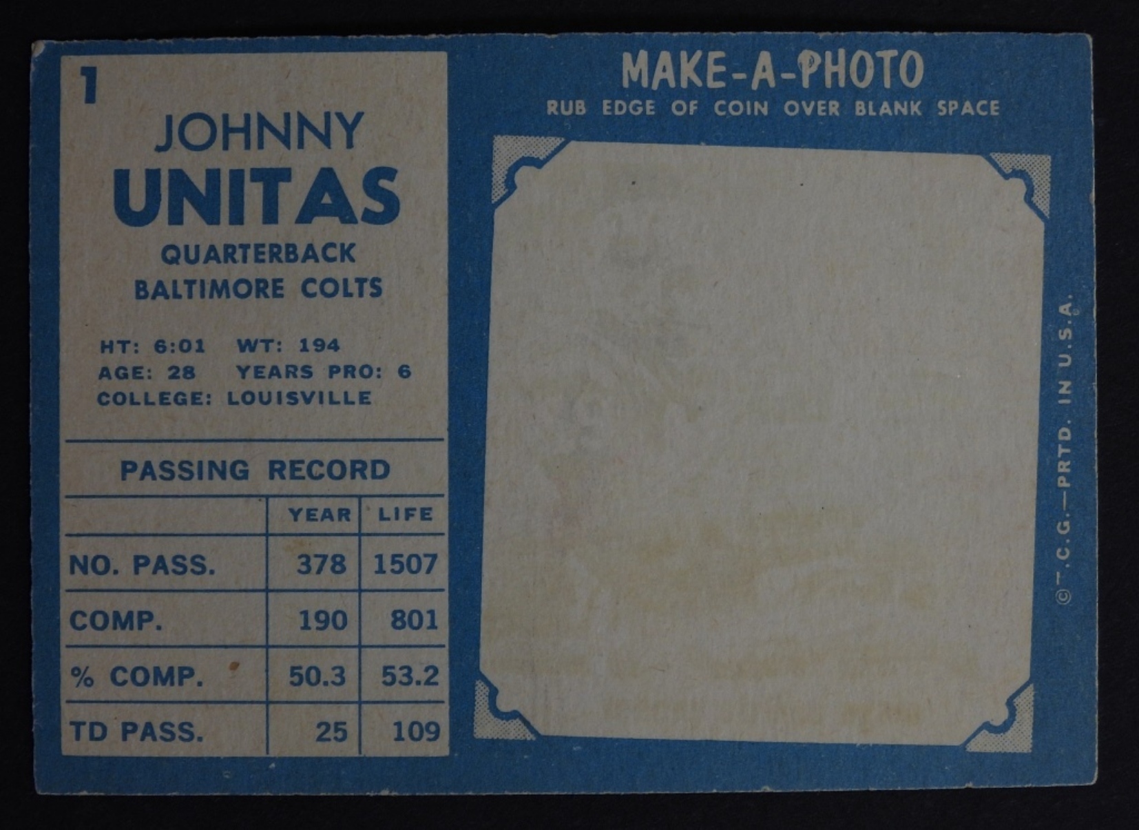 1961 TOPPS JOHNNY UNITAS #1, EX
