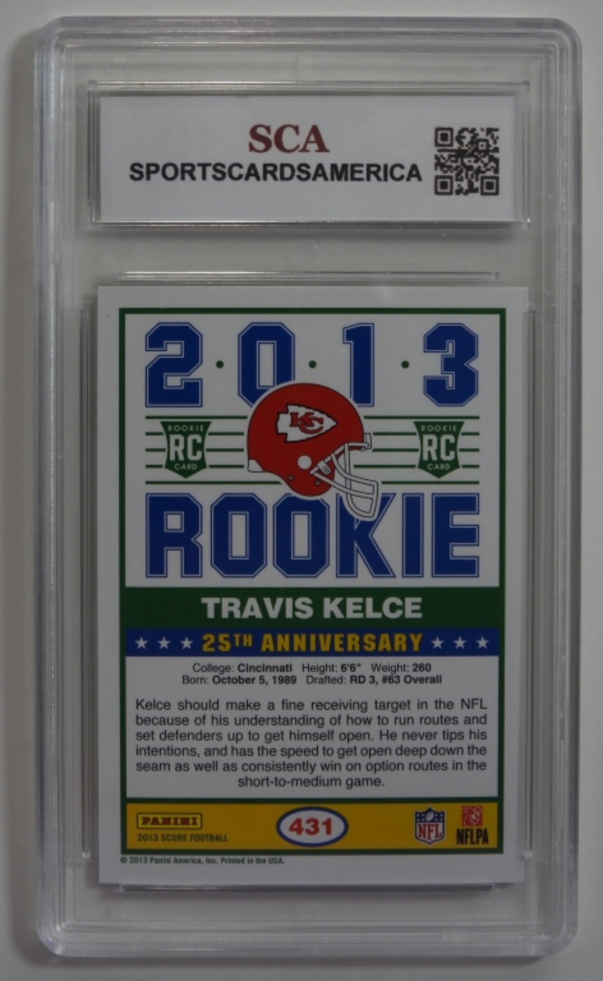 GRADED FROM SCA (NOT VERIFIED) 10 GEM MINT, TRAVIS KELCE 2013 SCORE, ROOKIE CARD #431