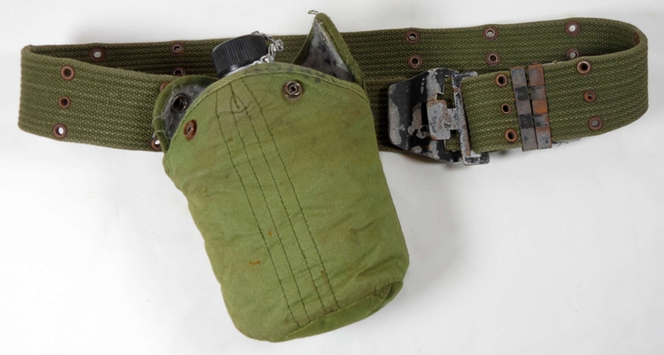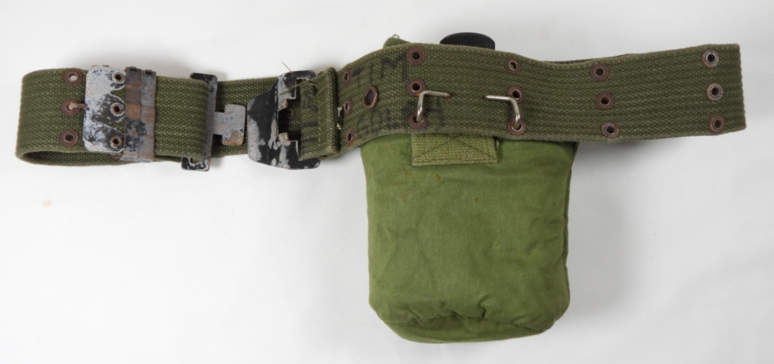 NORMAL WEAR DOES HAVE SOME STAINS, WRITING ON THE INSIDE WITH THE NAME DAN. THE CANTEEN HAS SOME MINOR DINGS