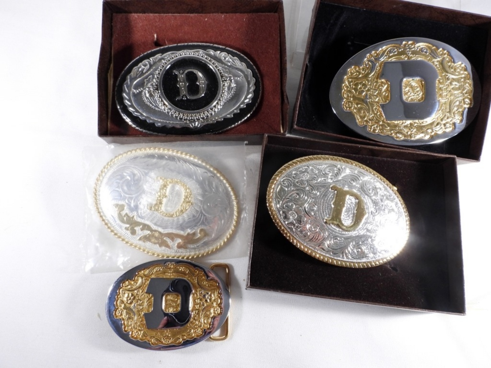 (5) GOLD AND SILVER WESTERN STYLE BELT BUCKLES