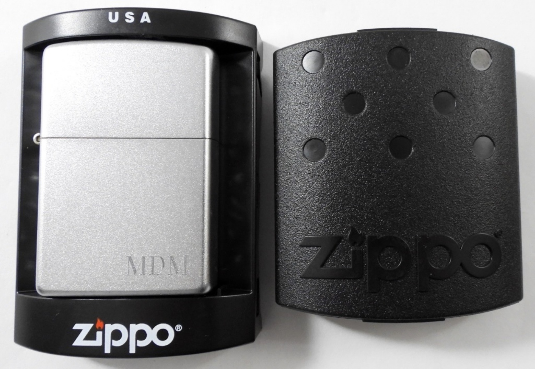 2004 SEALED BRUSHED CHROME ZIPPO LIGHTER WITH ETCHED SCROLL DESIGN ON THE SIDES, IN A ZIPPO CASE