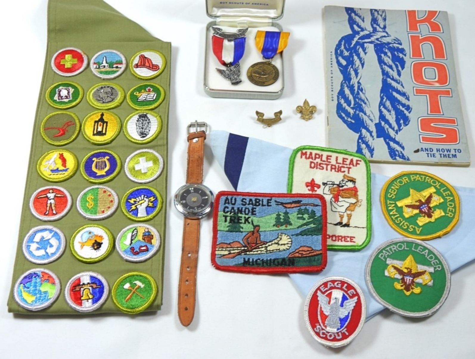 MULTIPLE PATCHES, SCARFE, WRIST BAND COMPASS, MEDALS & MORE – VERY NICE LOT