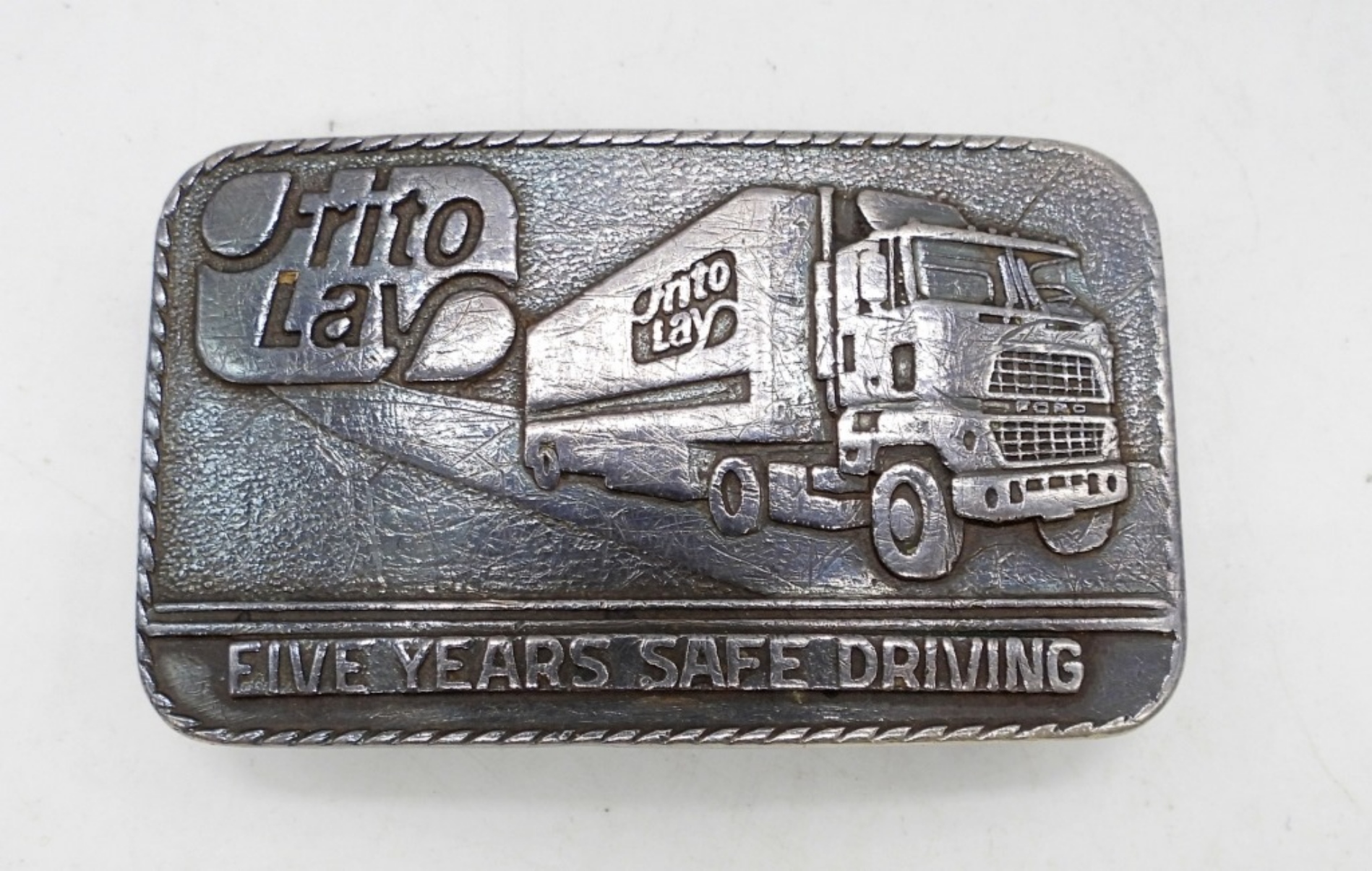 Frito Lay Five Years Safe Driving Belt Buckle. Marked Haltom Sterling. 52.5 DWT