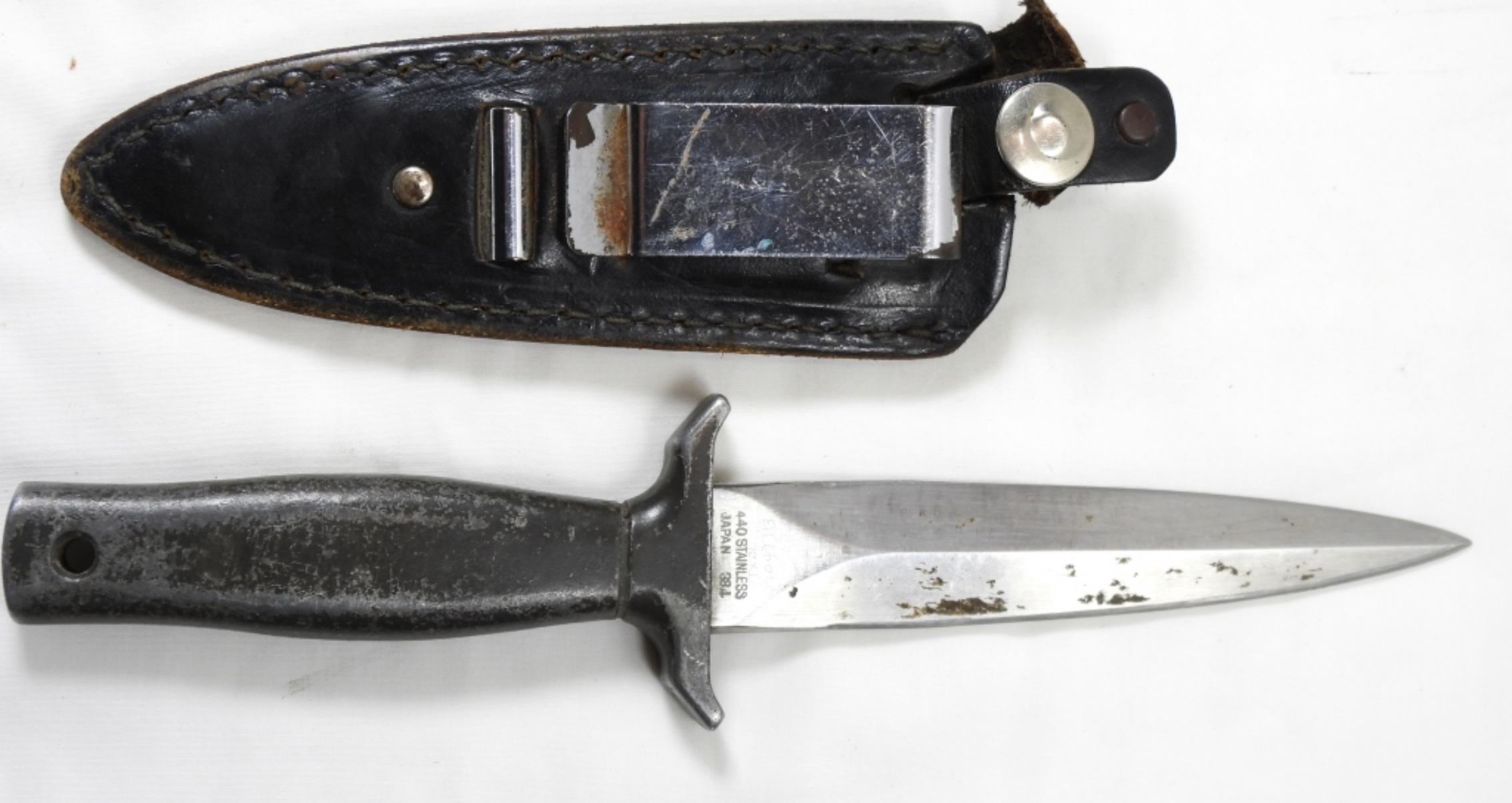 VINTAGE SPEAR HEAD DAGGER KNIFE, BLADE 4.75”, KNIFE 8.75” ALL TOGETHER, KNIFE DOES COME WITH ORIGINAL SHEATH
