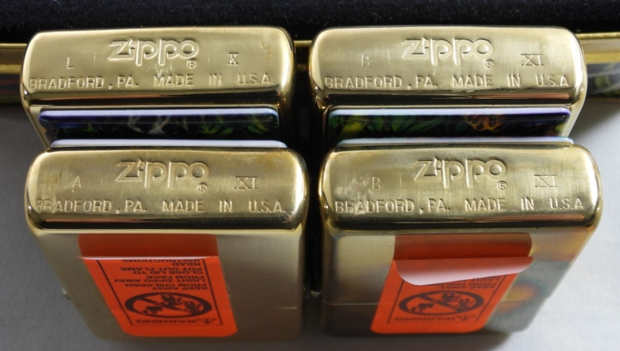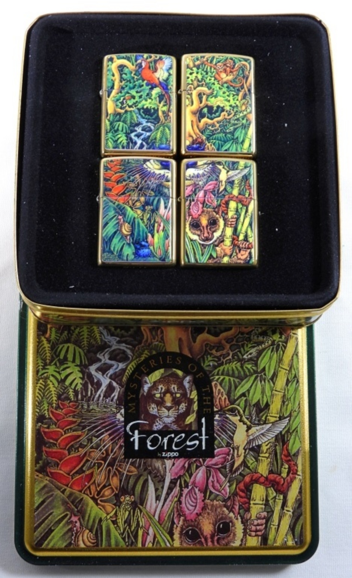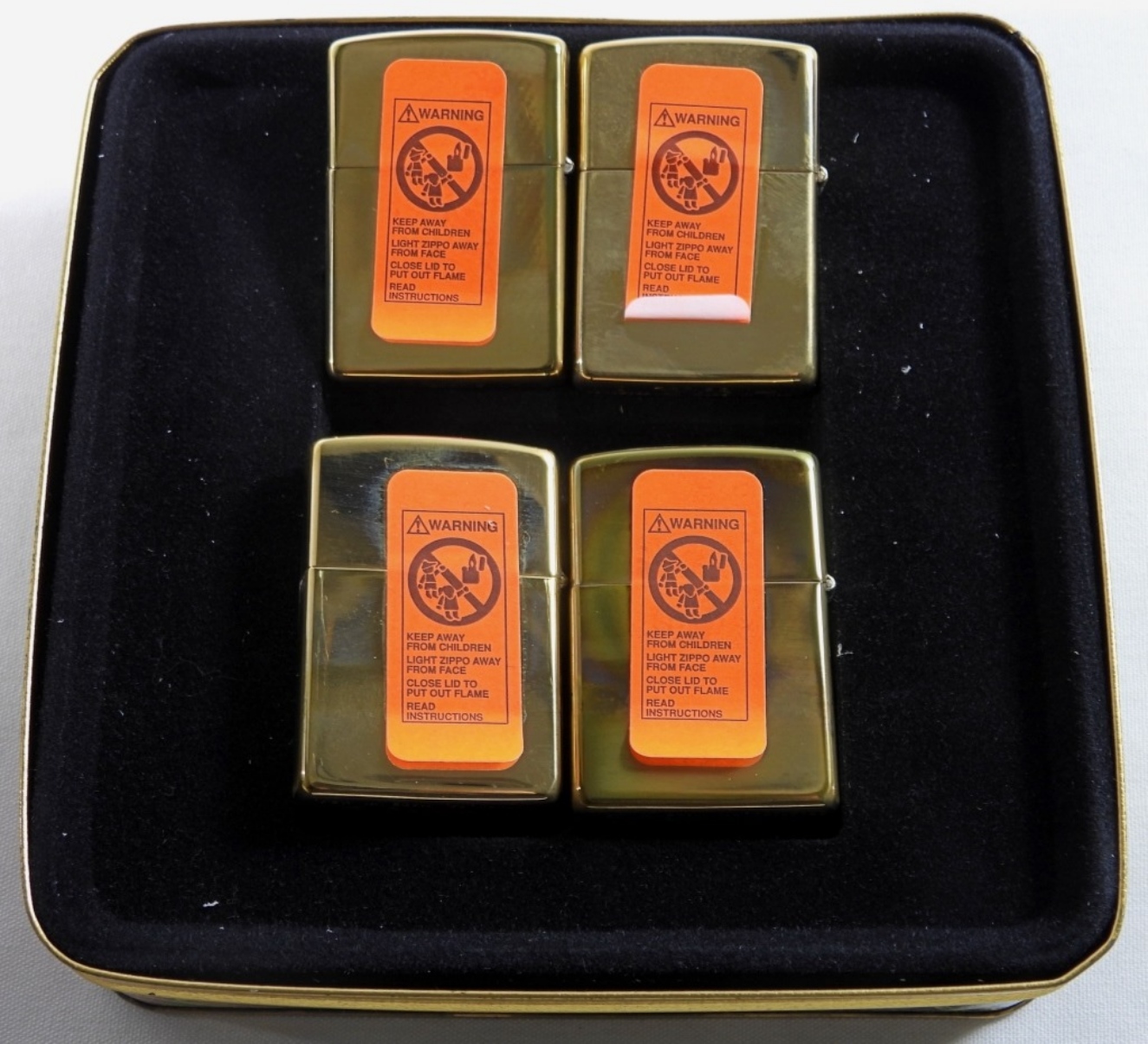 SEALED, LIMITED EDITION 1995 IN ORIGINAL TIN CASE. ALL FOUR ZIPPO ARE SEALED, SOLID BRASS