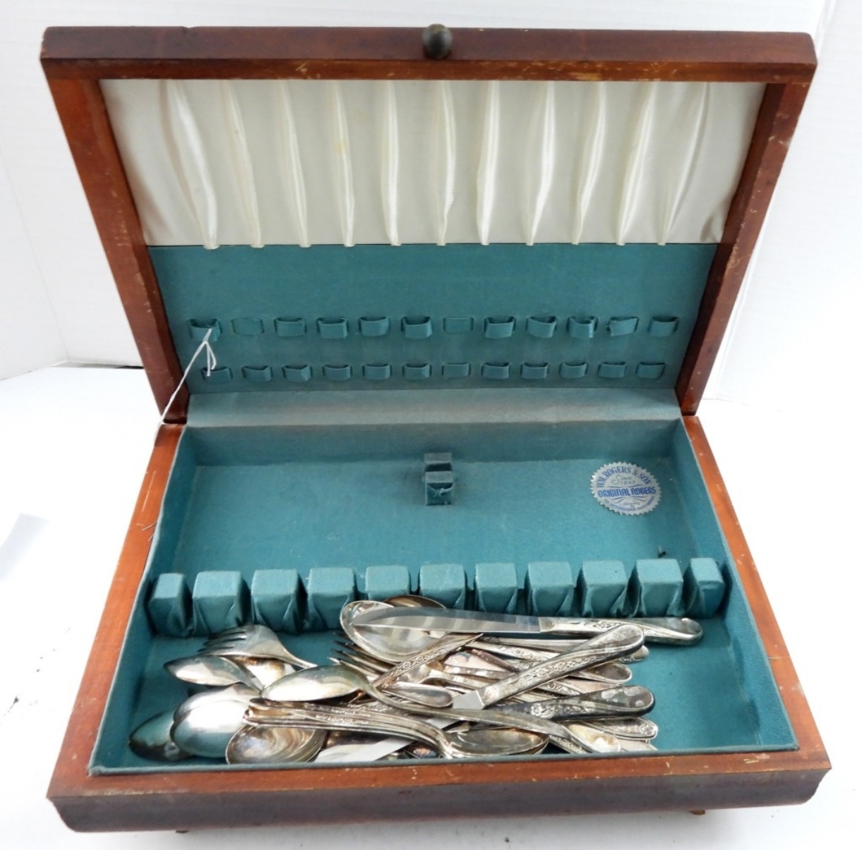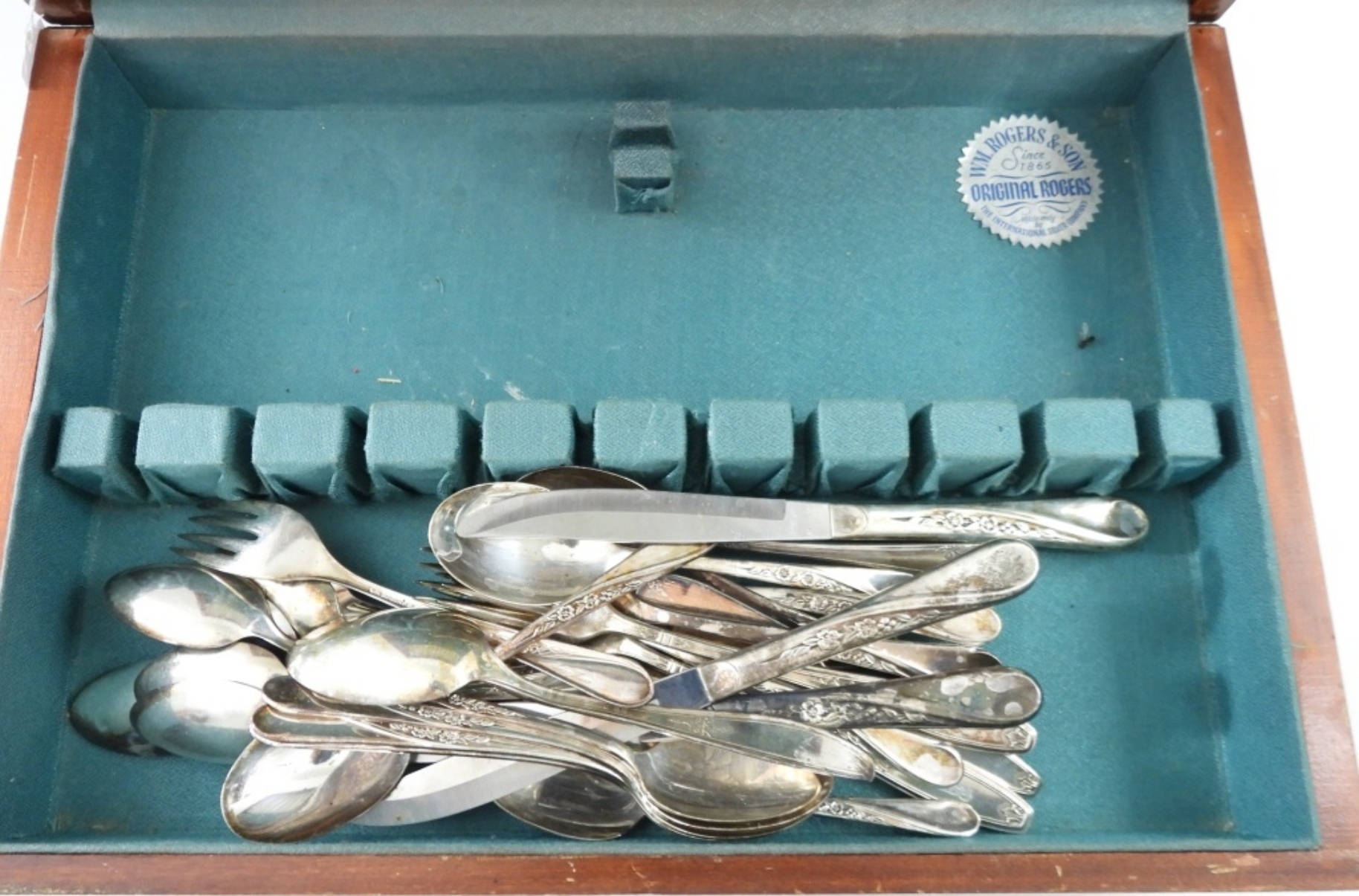 SPRING FLOWER DESIGN – with WOOD BOX – SILVER PLATED / MIXED SET / LOOKS TO BE ALL SAME PATTERN
