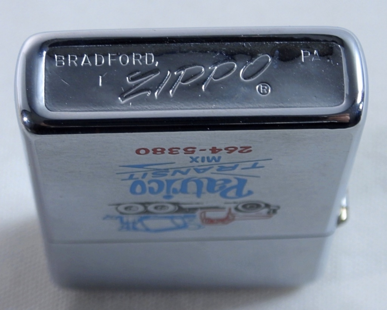 PATRICO TRANSIT MIX 264-5380 ON FRONT OF THE ZIPPO, UNFIRED, IN ZIPPO BOX