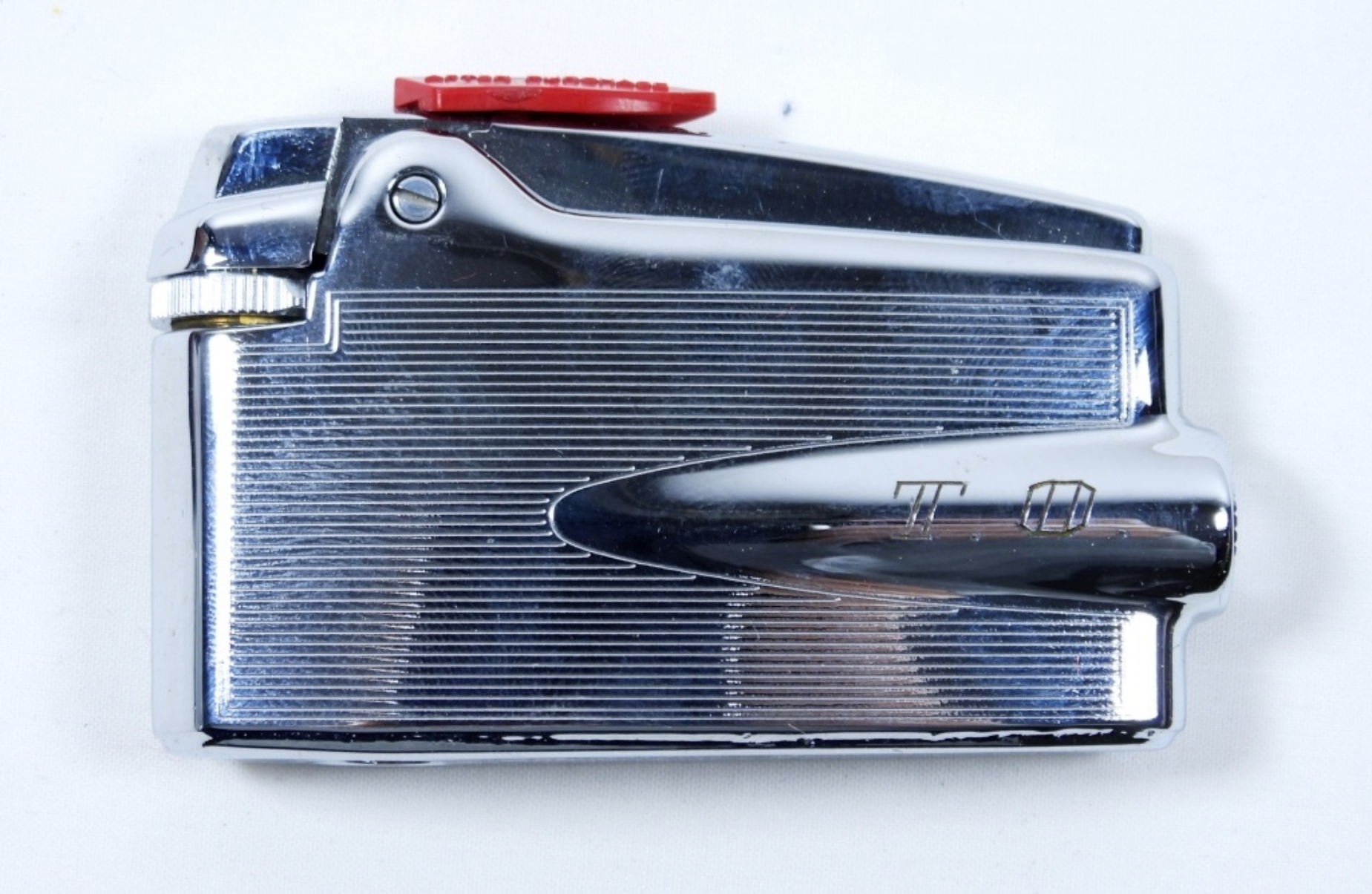 VINTAGE 1950’S RONSON VARAFLAME BUTANE LIGHTER- COMES WITH A BOX- UNFIRED STILL HAS THE INSERT PIECE . IN GOOD CONDITION DOES SHOW SOME WEAR PREOWNED. ENGRAVED T.O. ON THE LIGHTER.