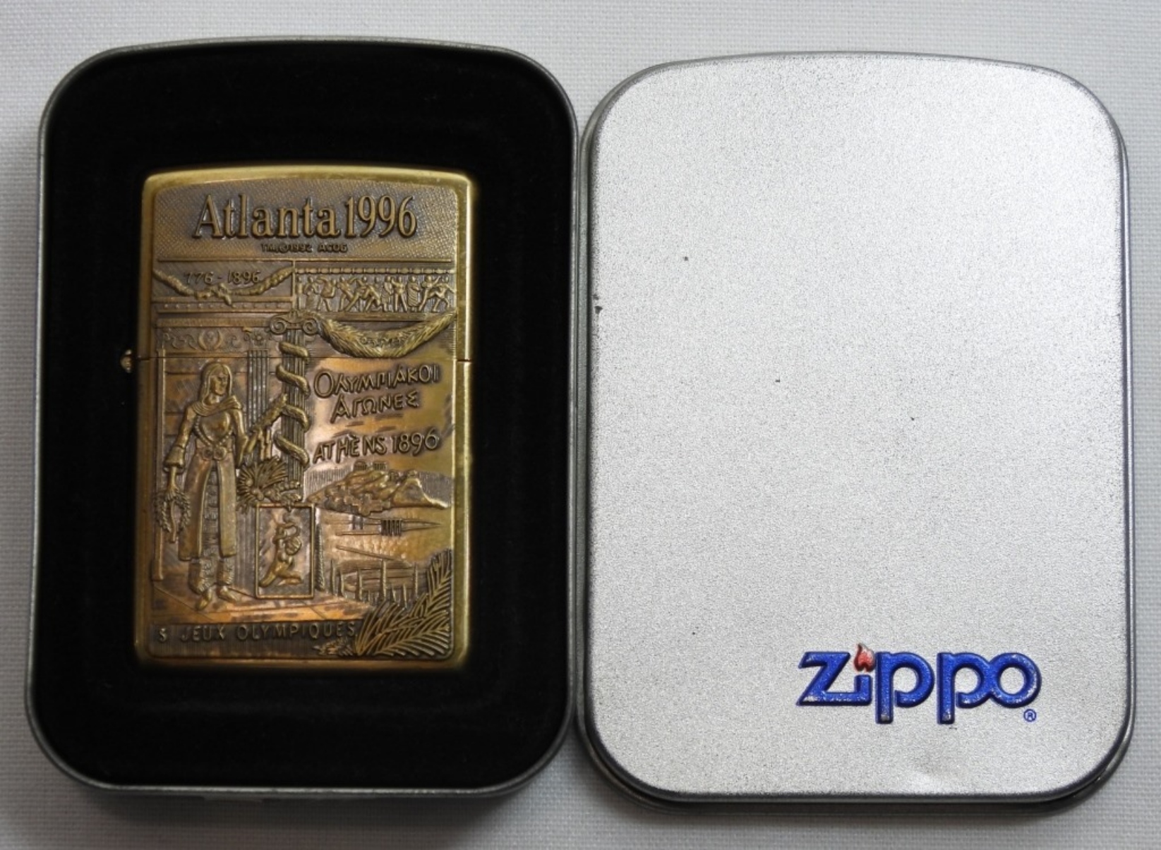 BRASS ZIPPO FROM 1996 OLYMPIC GAMES IN ATLANTA, IN A ZIPPO CASE