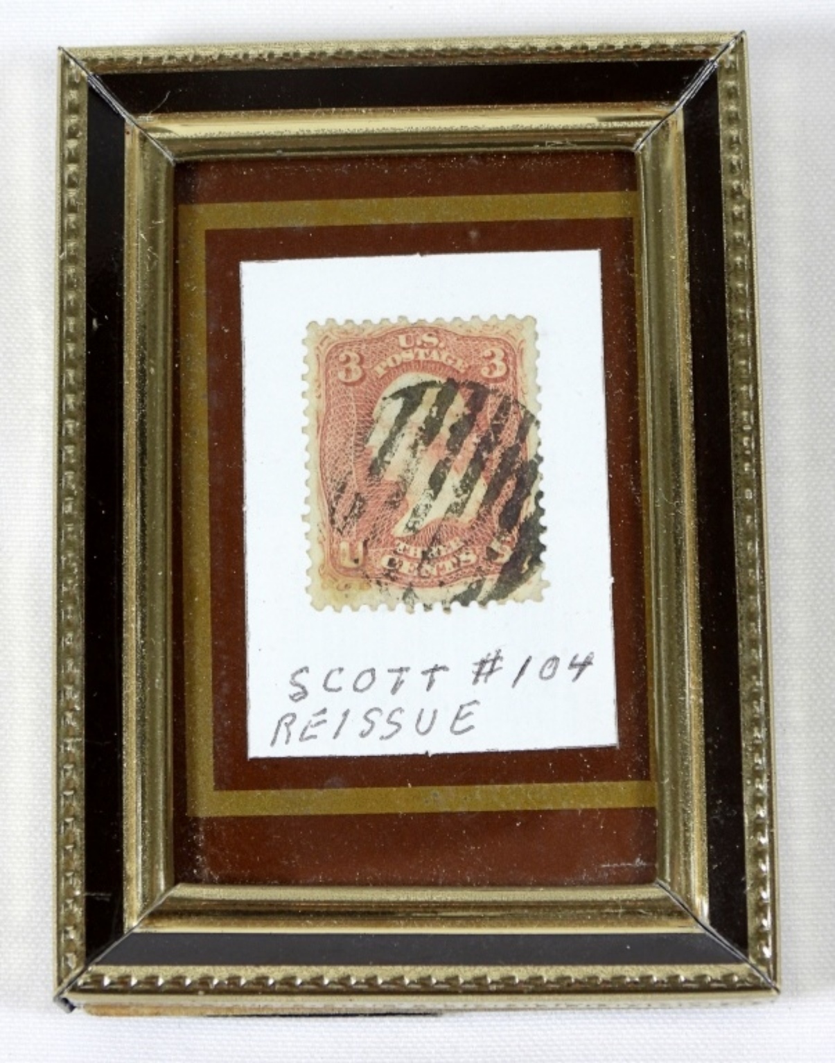 THREE CENT WASHINGTON STAMP in FRAME – UNVERIFIED