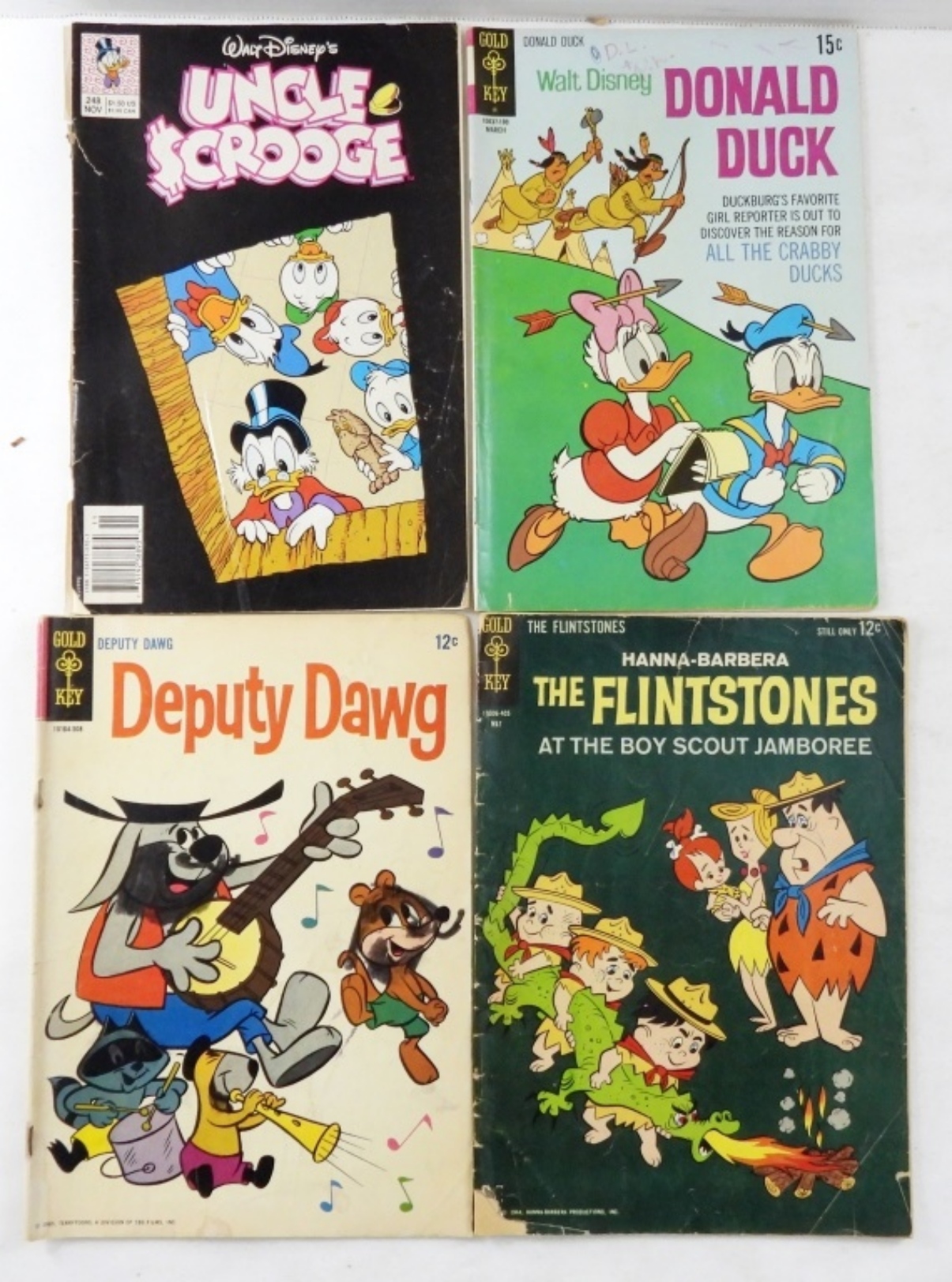 GOLD KEY WALT DISNEY LOT #31. DONALD DUCK #136. UNCLE SCROOGE #248, 274. THE FLINTSONES AT THE BOY SCOUT JAMBOREE #18, DEPUTY DAWG #1. ALL IN FAIR TO GOOD CONDITION.
