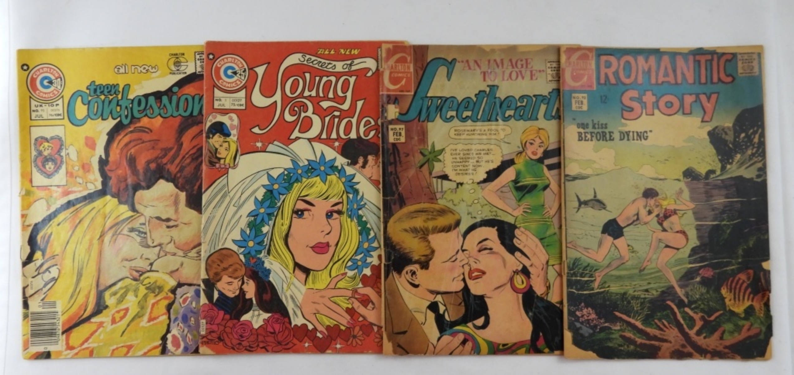 ROMANTIC STORY NO 92. SWEETHEARTS- NO 97. YOUNG BRIDES NO 1. TEEN CONFESSIONS NO 95. SECRET ROMANCE NO 39. BLONDIE #194-194. ALL ARE IN FAIR TO GOOD CONDITION, THEY ALL SHOW WEAR, ALL PREOWNED.