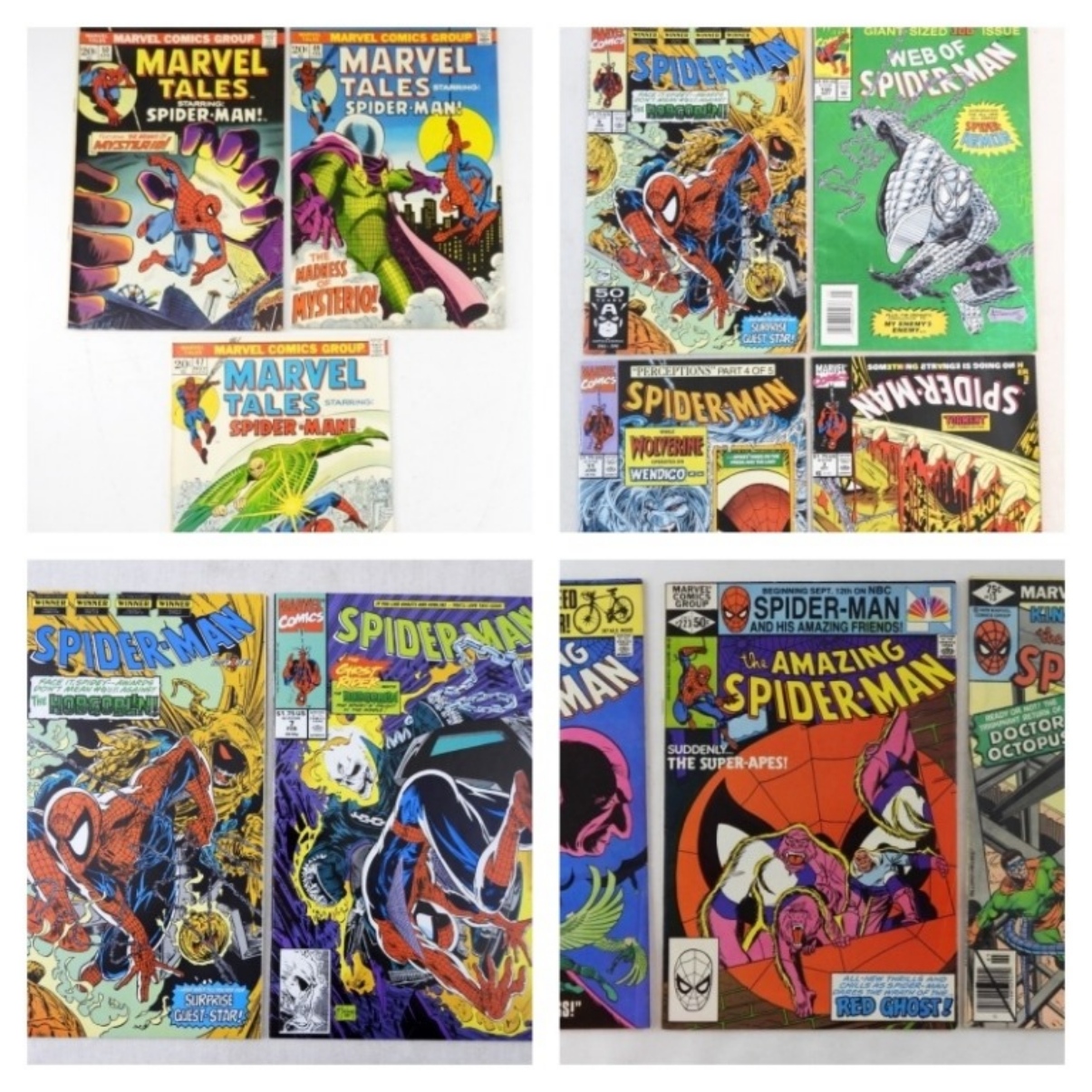 3- MARVEL TALES STARRING SPIDER-MAN #47,59,50, SPIDER-MAN THE HOBGOBLIN PART 1 & 2 (PART ONE HAS A DUPLICATE) 3- THE AMAZING SPIDER-MAN 1979-1981, 100TH ISSUE OF WEB OF SPIDER-MAN