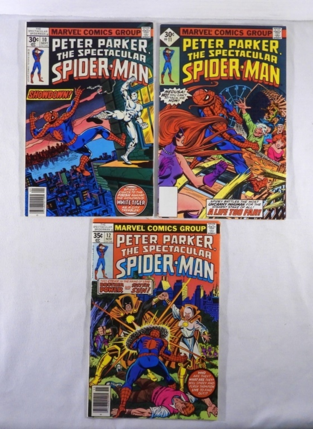 (3) 1977 MARVEL COMICS SPIDERMAN PETER PARKER- NO. 10, 11, 12 (VG)