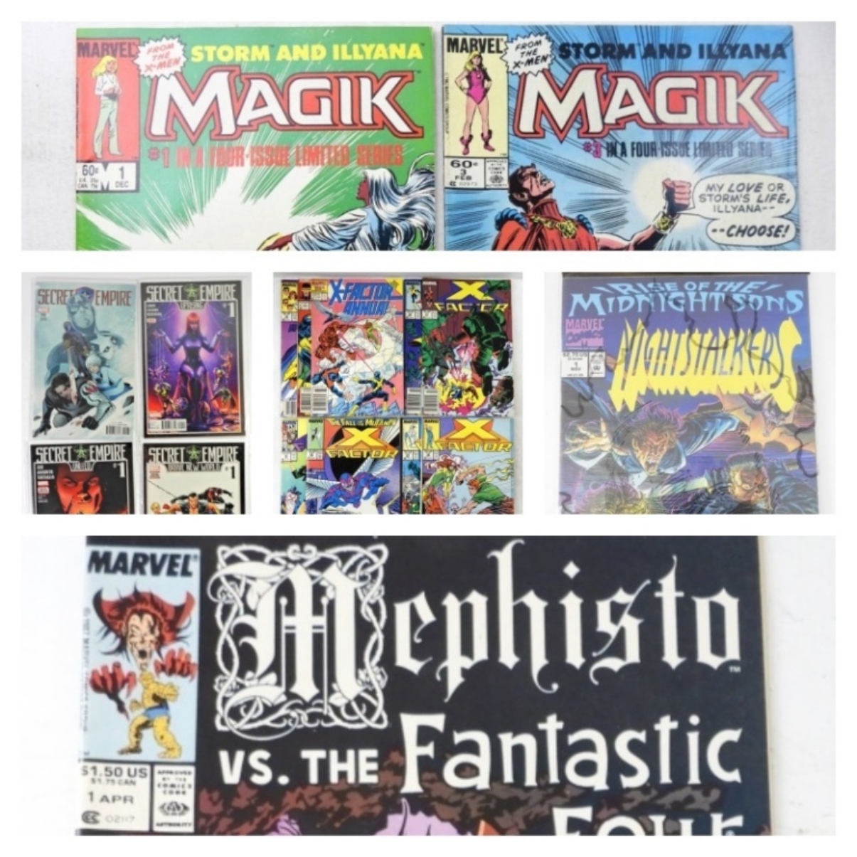 9- X-FACTOR ISSUES ALL DIFFERENT VG OR BETTER, PLUS 2- STORM & ILLYANA MAGIK VOL. 1 #1,1983, VOL. 1 #3, 1984, FOUR-ISSUE LIMITED SERIES, FINE CONDITION, 1987 MARVEL MEPHISTO VS THE FANTASTIC FOUR # 1 (VG/VF), RISE OF