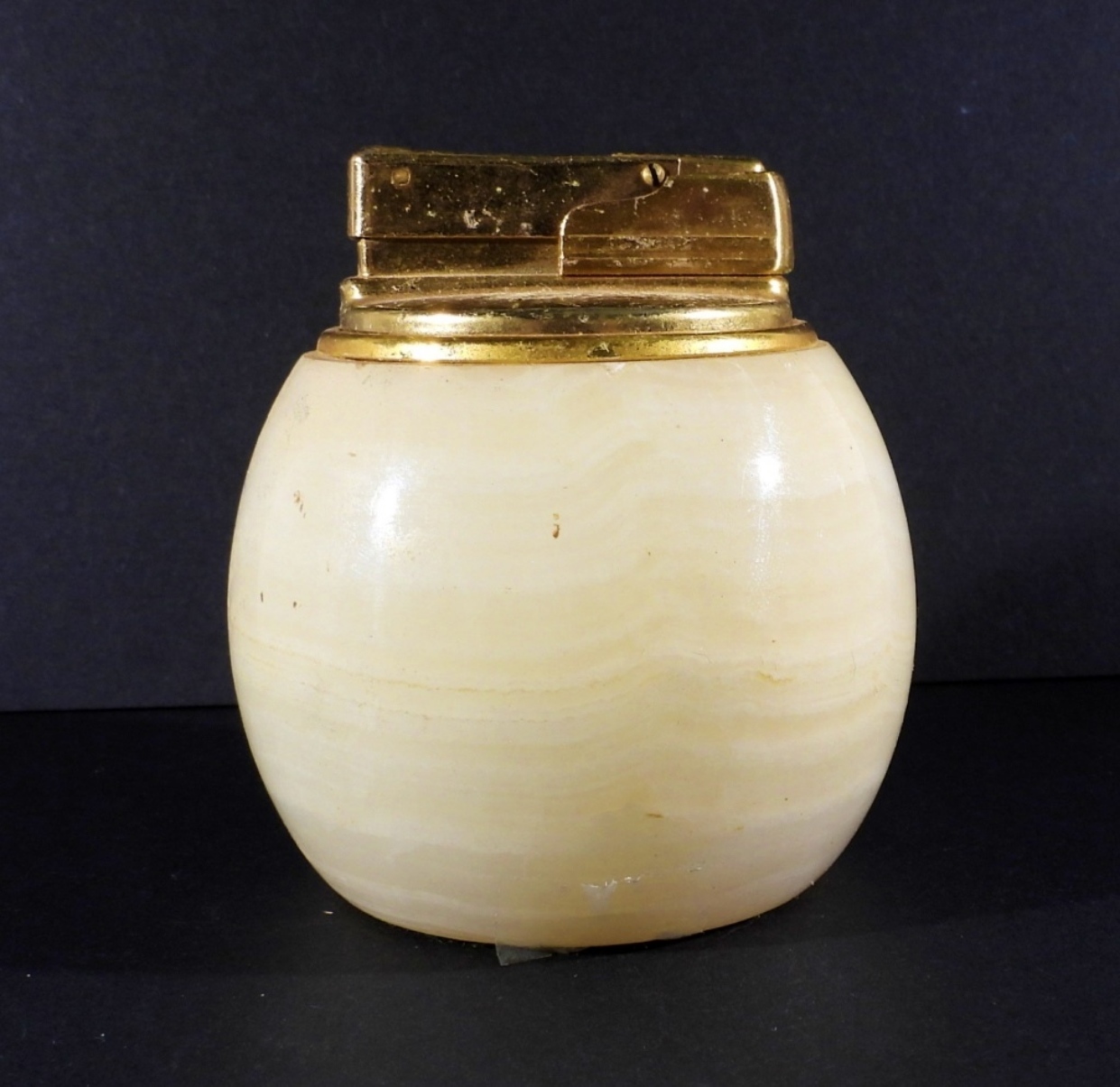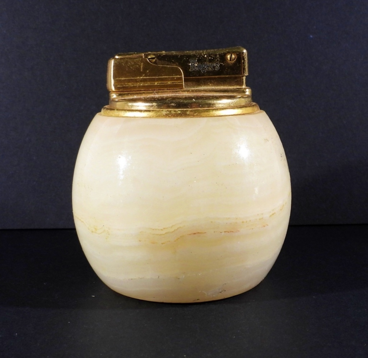 VINTAGE ROGERS WHITE ONYX TABLE LIGHTER. 3″ TALL. VERY HEAVY.