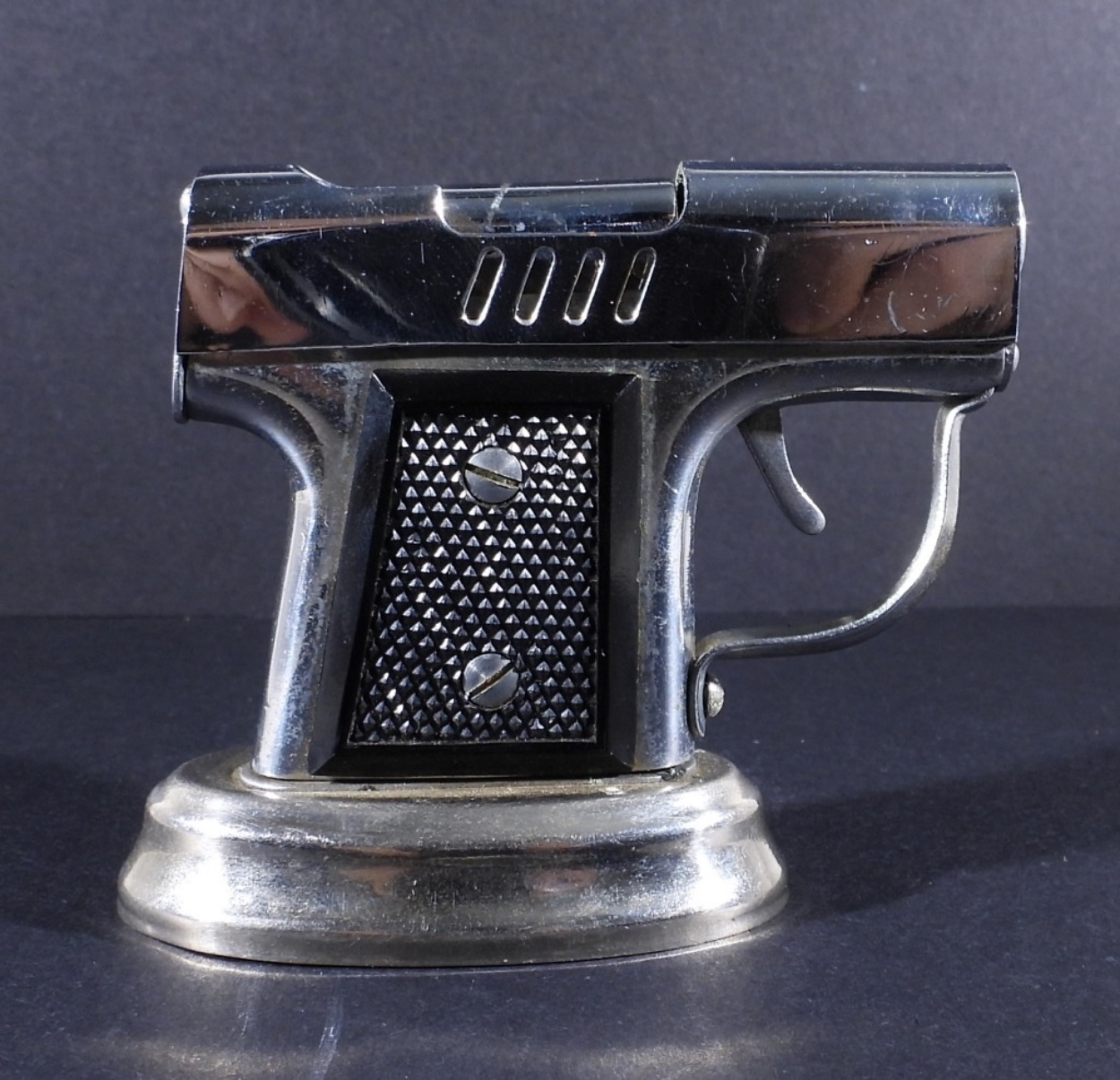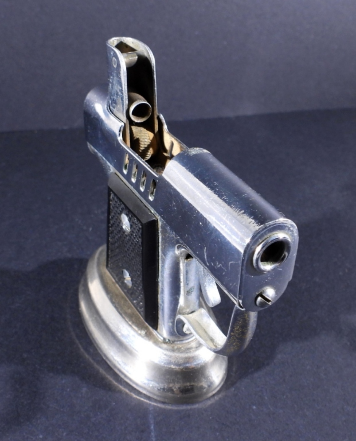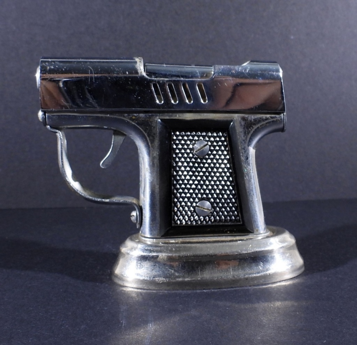 VINTAGE PISTOL SHAPED TABLE LIGHTER, MADE IN OCCUPIED JAPAN. CIRCA 1945-1952. 2.5″ TALL, 2 3/4″ WIDE.