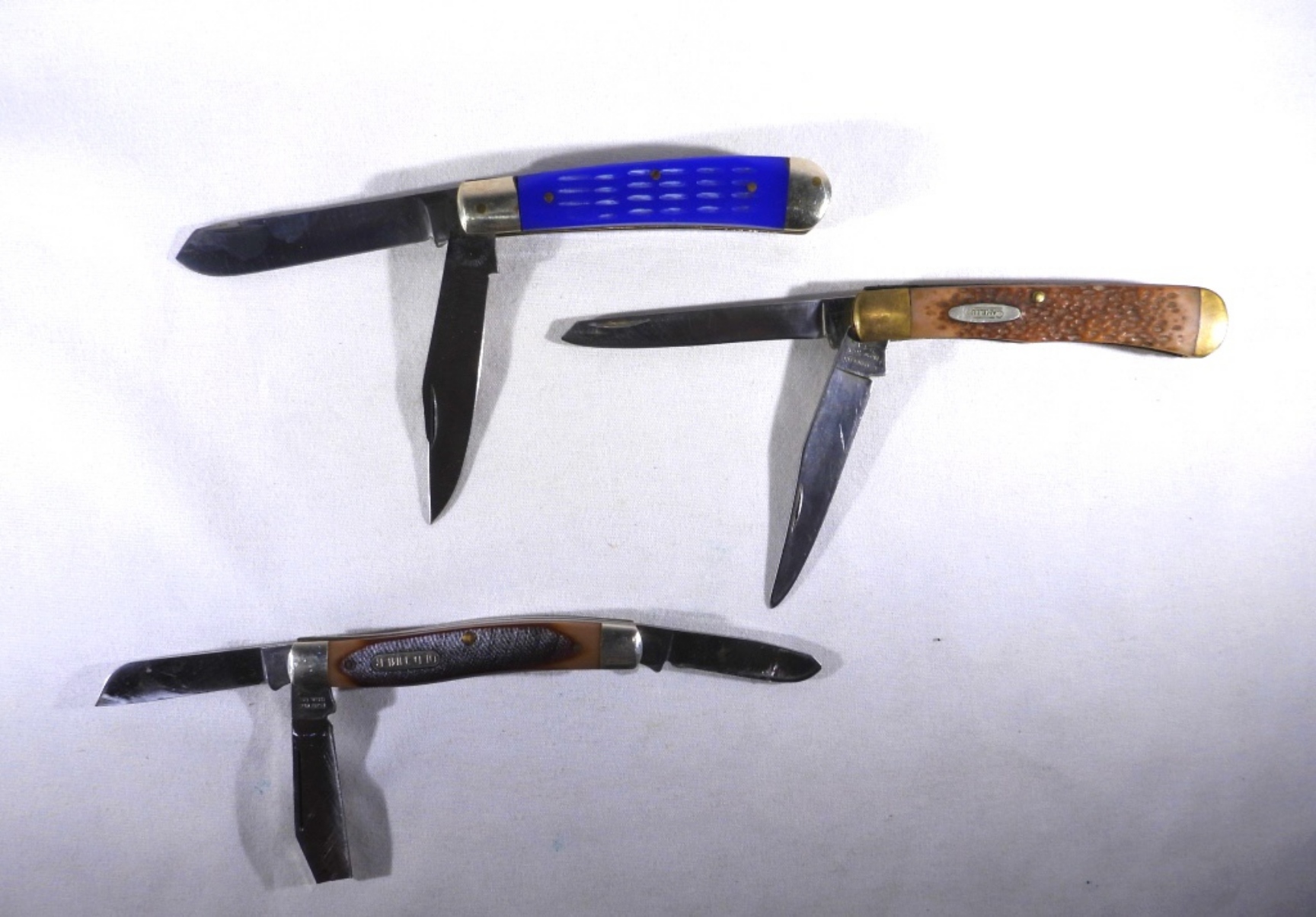 SCRADE OLD TIMER 80T has (1) TIP BROKEN, CAMILLUS TWO-BALDE used & PAKISTAN TWO-BLADE BLUE HANDLE like new!