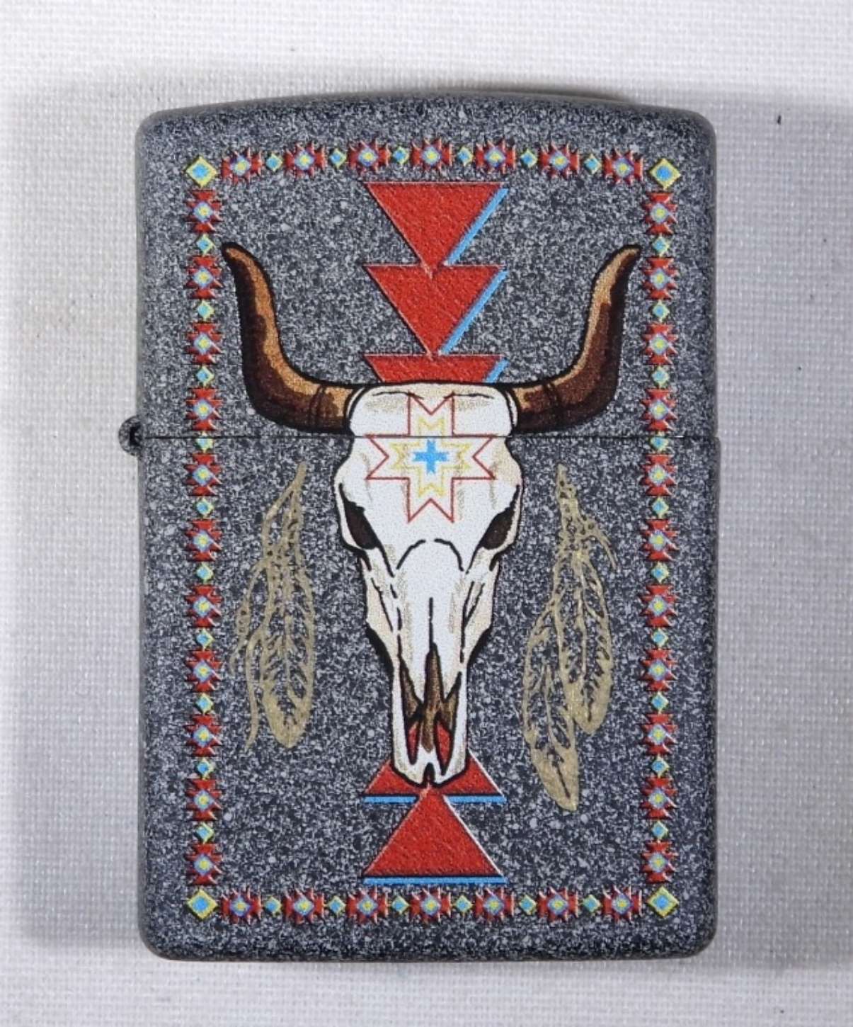 SEALED, STONE OVERLAY WITH DEER SKULL, IN A ZIPPO BOX