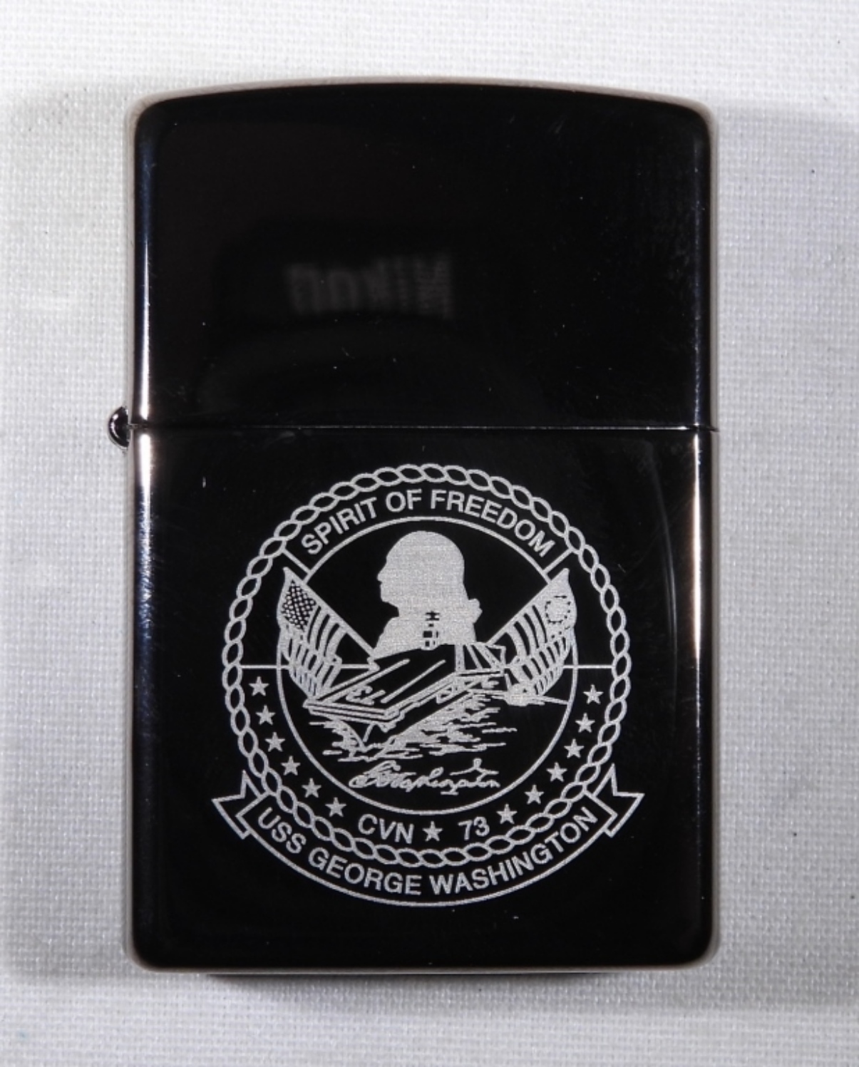 2003 SPIRIT OF FREEDOM CVN-73 USS GEORGE WASHINGTON LOGO ETCHED ON THE FRONT, IN A ZIPPO BOX