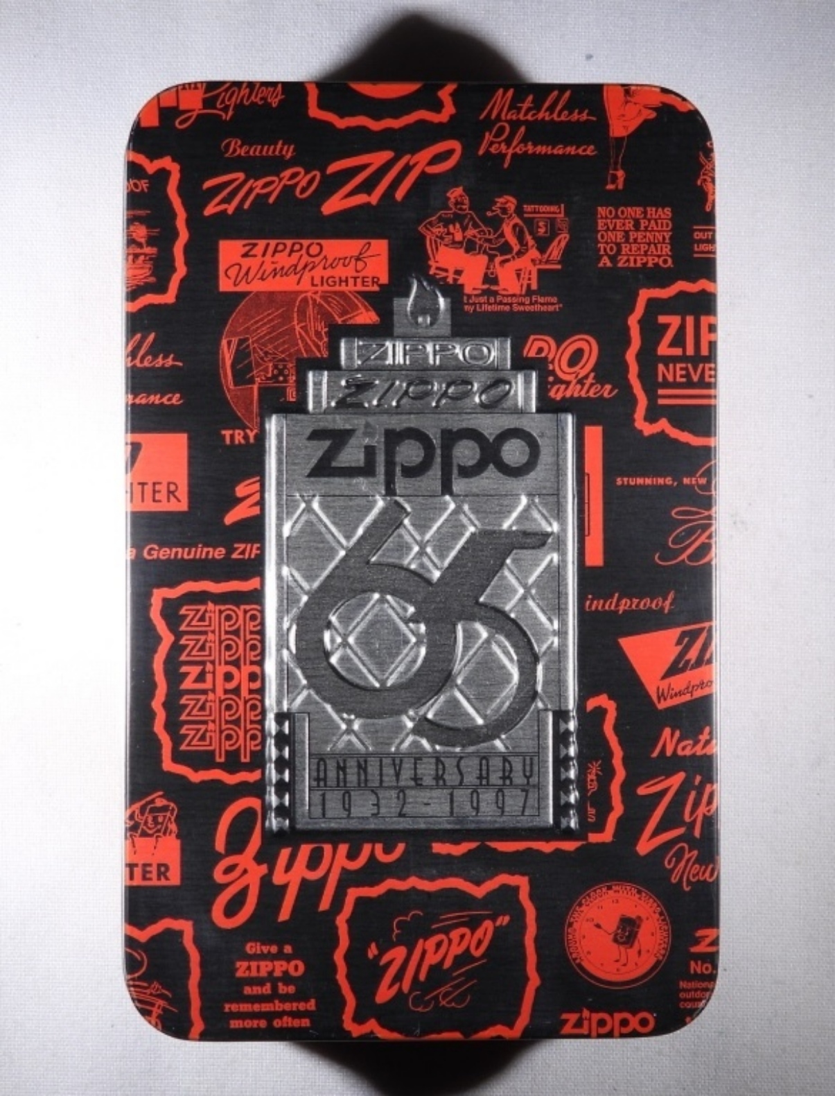 SEALED AND STILL COMES WITH ORIGINAL ZIPPO TIN CASE FOR THE 65TH ZIPPO ANNIVERSARY 1932-1997