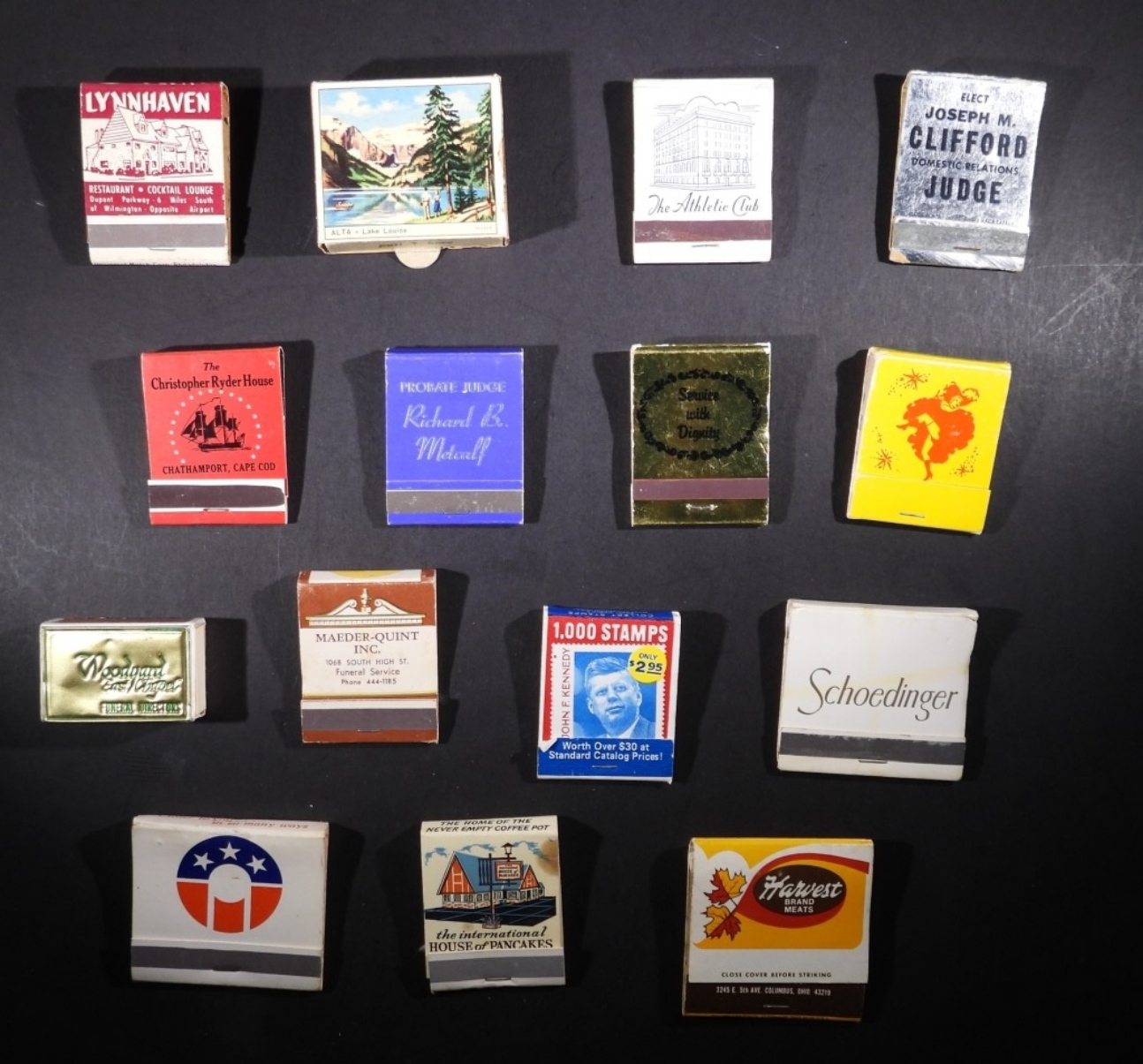 FIFTEEN VINTAGE MATCHBOOKS. POLITICAL AND ADVERTISING