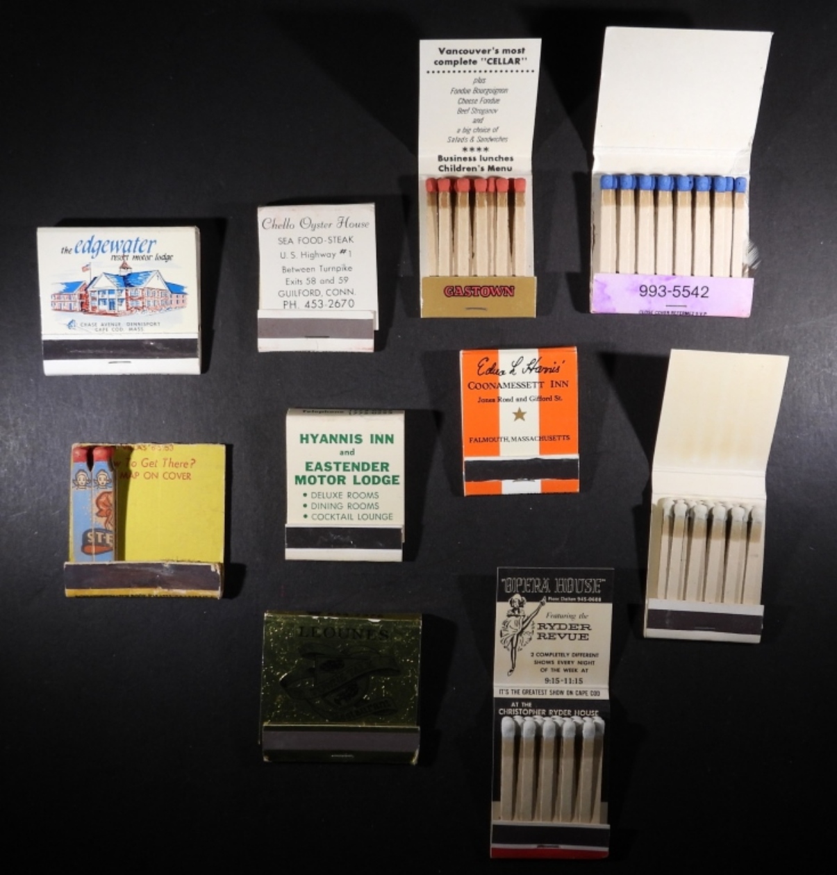 TEN VINTAGE DESTINATION MATCH BOOKS