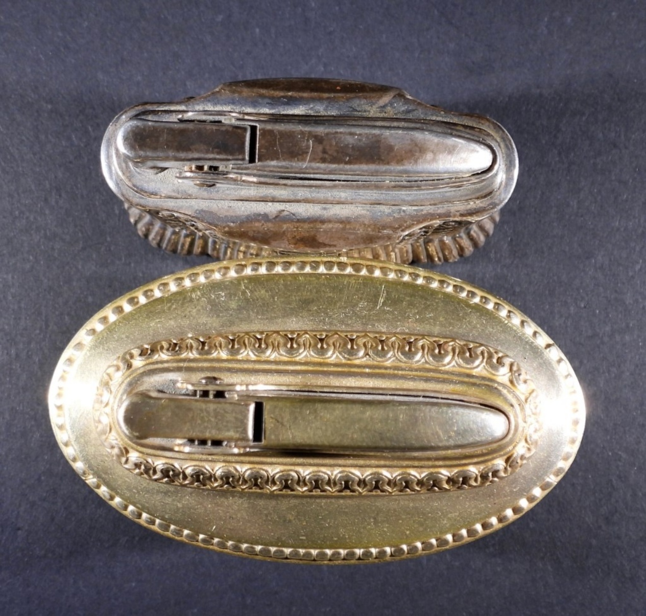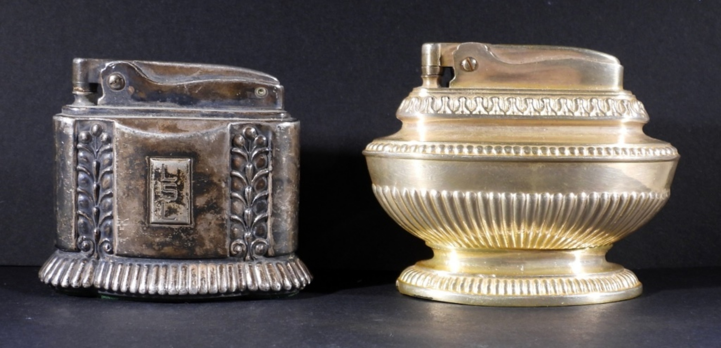 TWO VINTAGE 1950’s SILVER PLATED / SILVER TONE RONSON TABLE LIGHTERS. QUEEN ANNE & DIANA