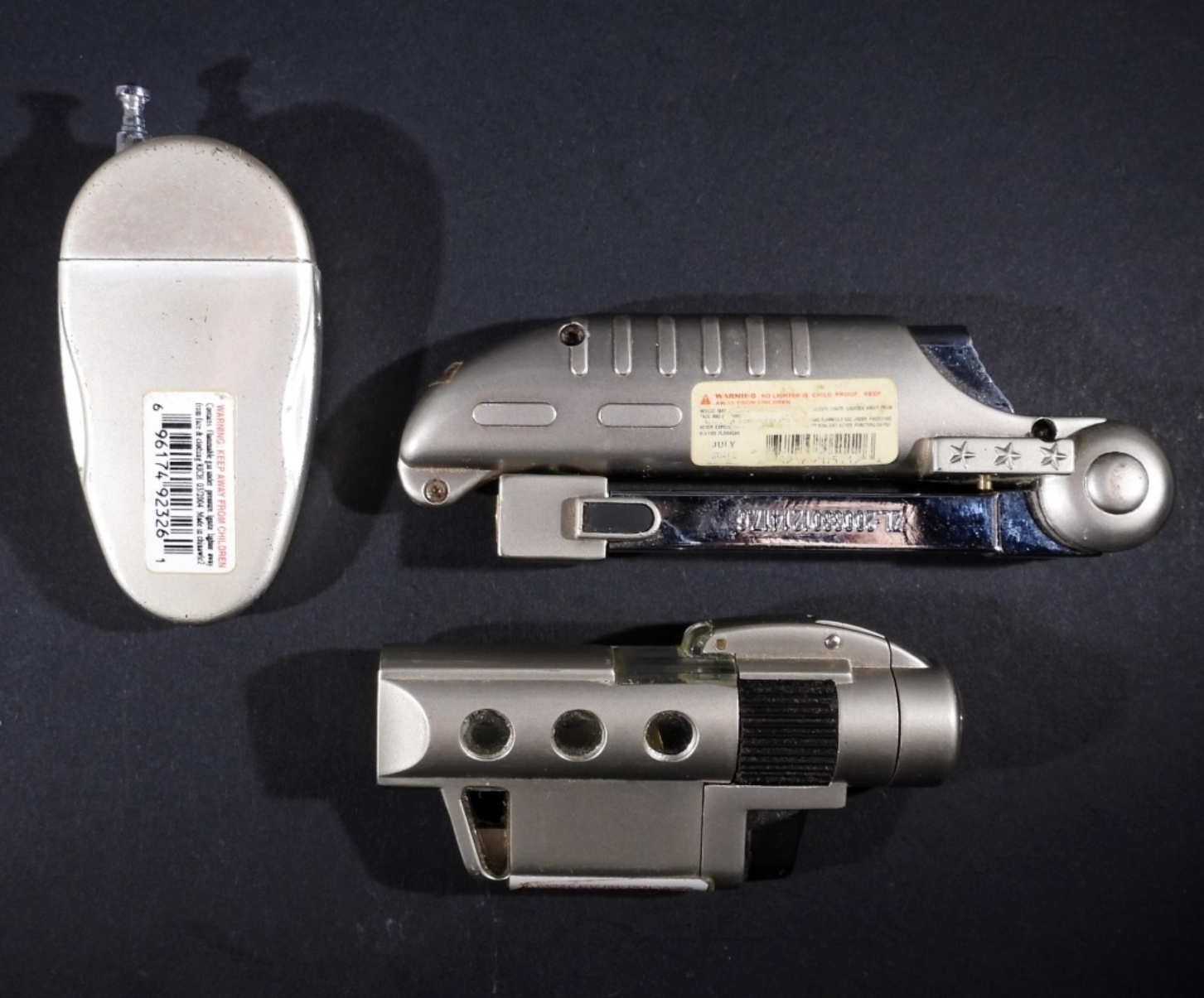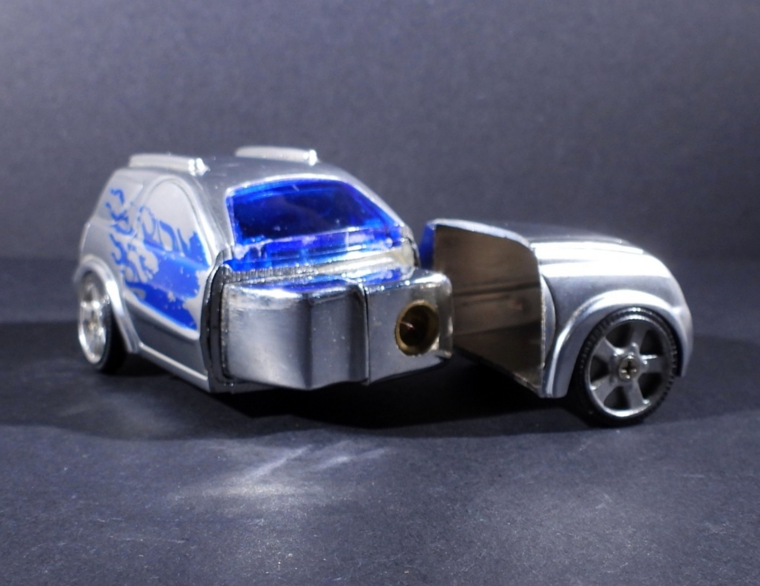FOUR FUN LIGHTERS. THE CAR PLAYS MUSIC WHEN YOU FLIP IT OPEN (BATTERY IS DYING).