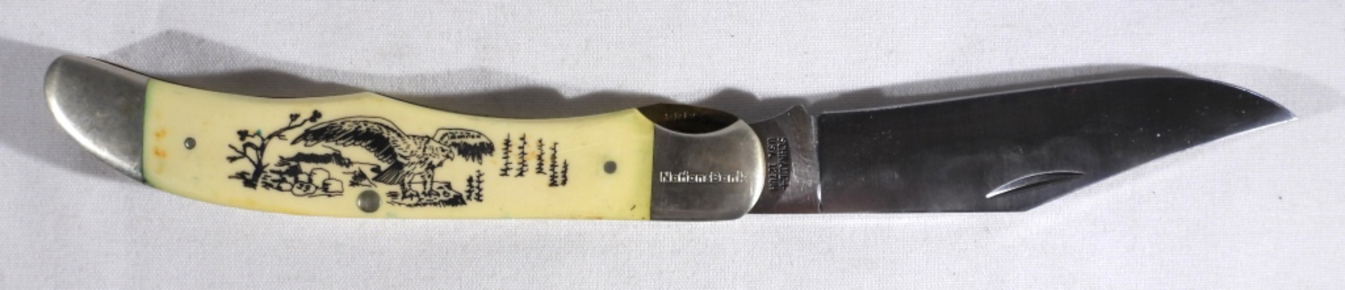 COMMEMORATIVE KNIFE ISSUED FROM “NATIONS BANK” with EAGLE THEME on HANDLE – LIKE NEW PRE-OWNED