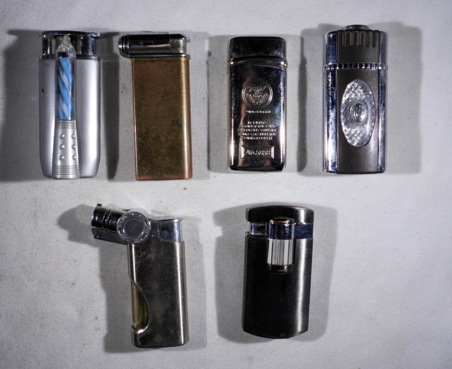SIX TORCH STYLE VINTAGE LIGHTERS. ONE LIGHTS VERY WELL STILL!