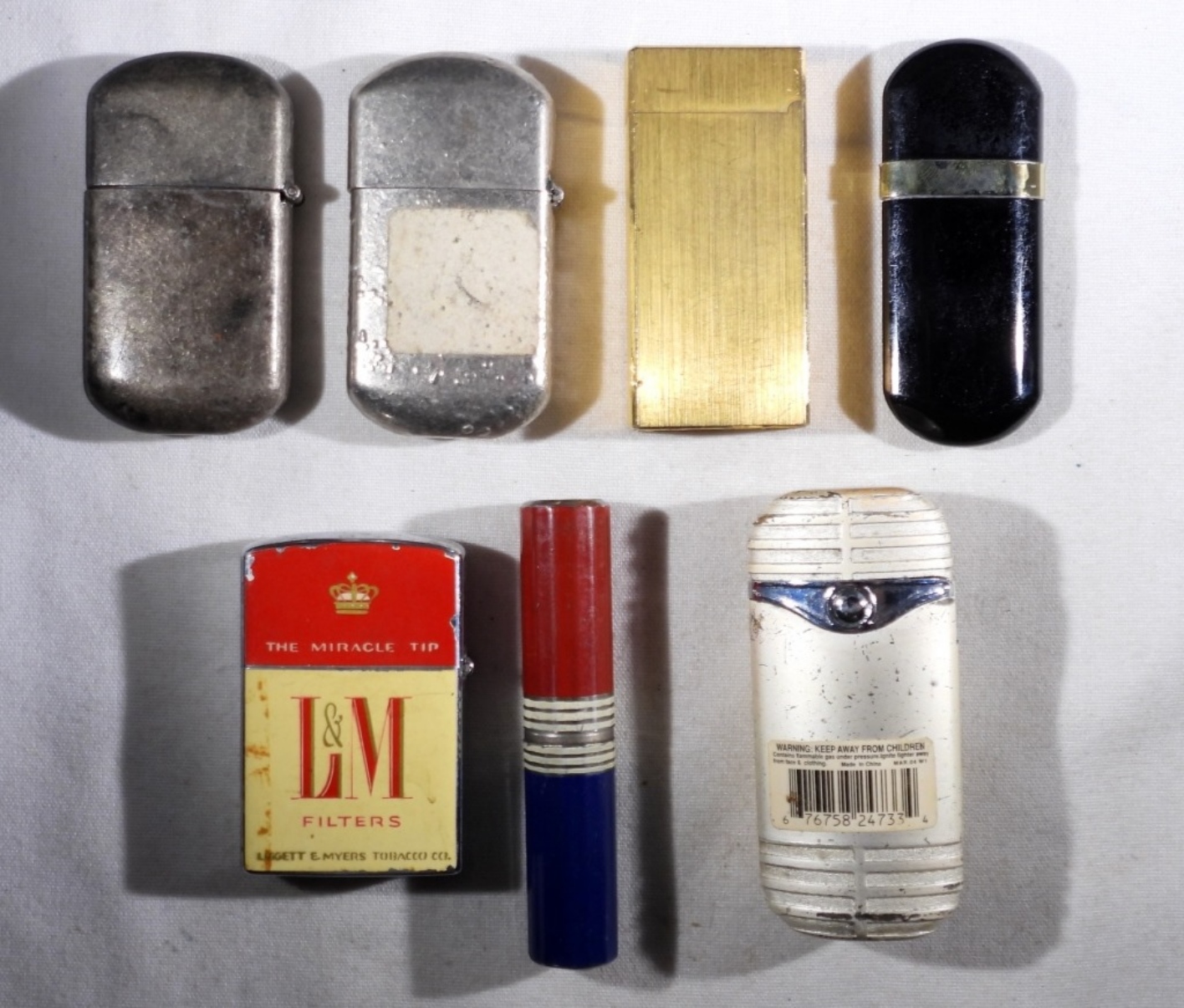 SEVEN VINTAGE NOVELTY LIGHTERS. L&M, CAMEL, WINSTON, PLAYERS & OTHER. SEE PHOTOS