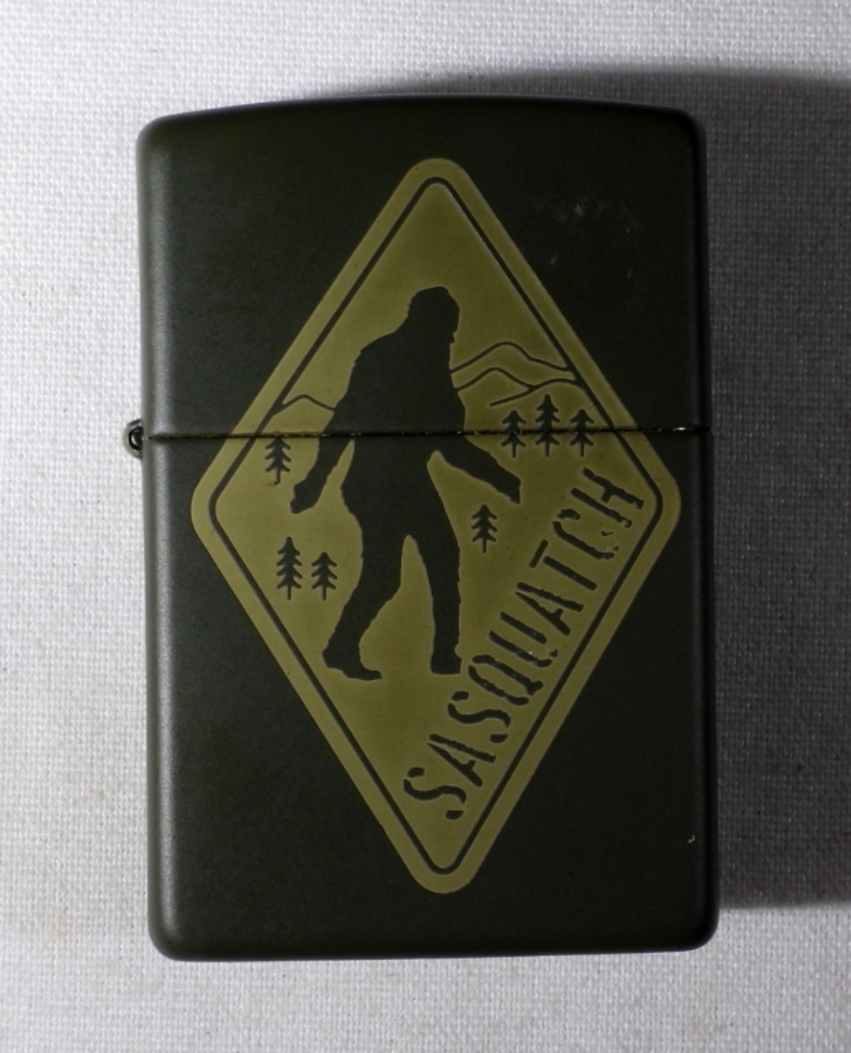 SEALED IN A ZIPPO BOX, SASQUATCH ON THE FRONT, MATTE GREEN