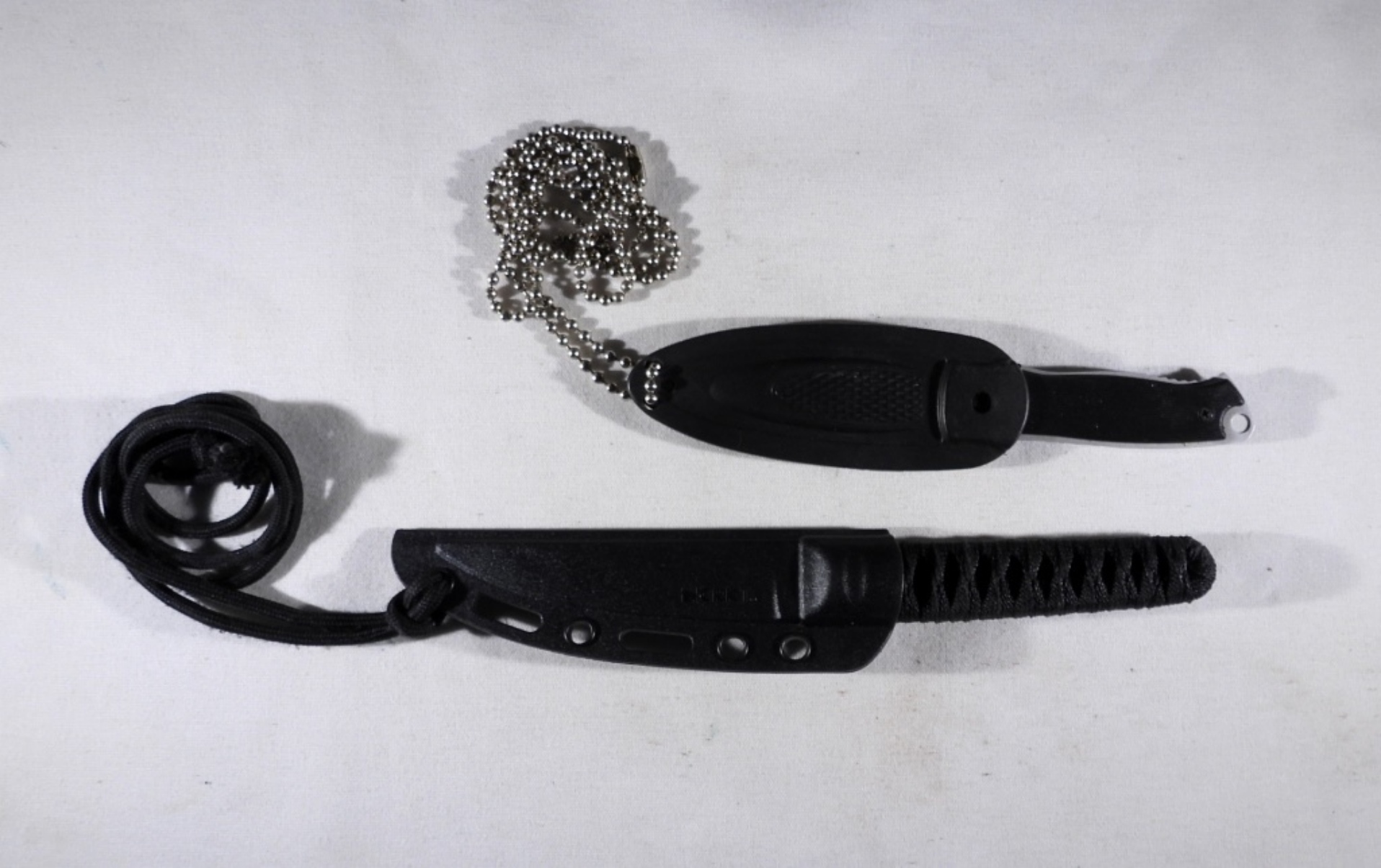 7 1/2″ CRKT & 5 1/2″ JAGUAR – BOTH LIKE NEW WITH SCABBARDS