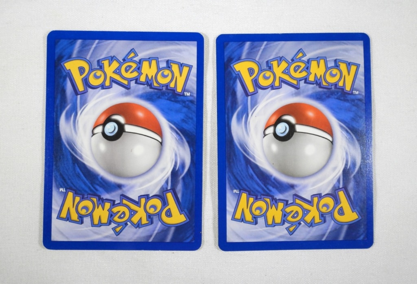 TWO MISDREAVUS POKEMON CARDS. BOTH NUMBERED 25/109. REVERSE HOLO IN GOOD SHAPE BUT SCRATCHED ON THE BOTTOM LEFT CORNER. PLAIN CARD IN NM/M CONDITION.
