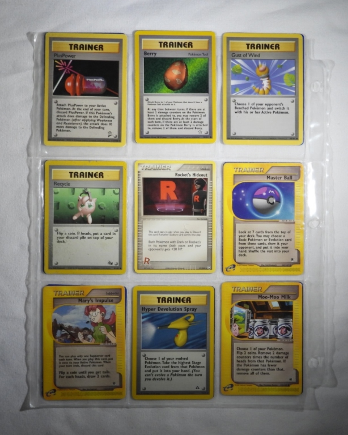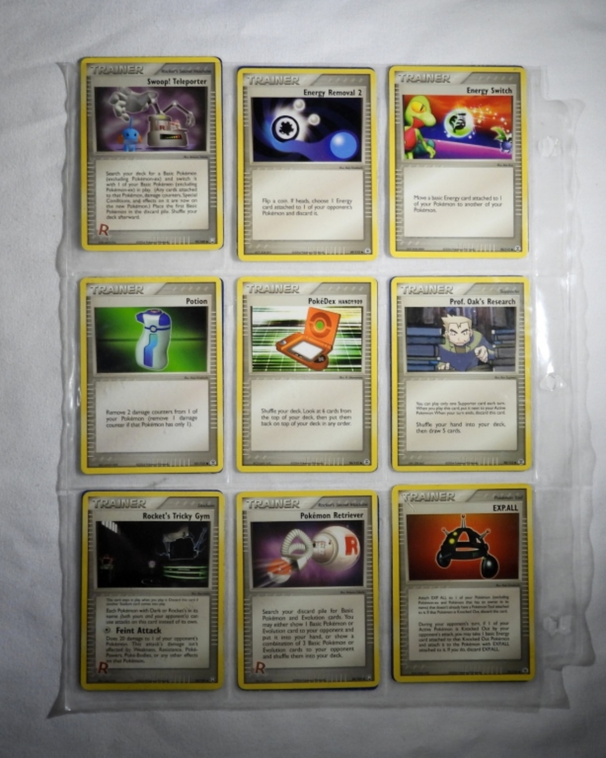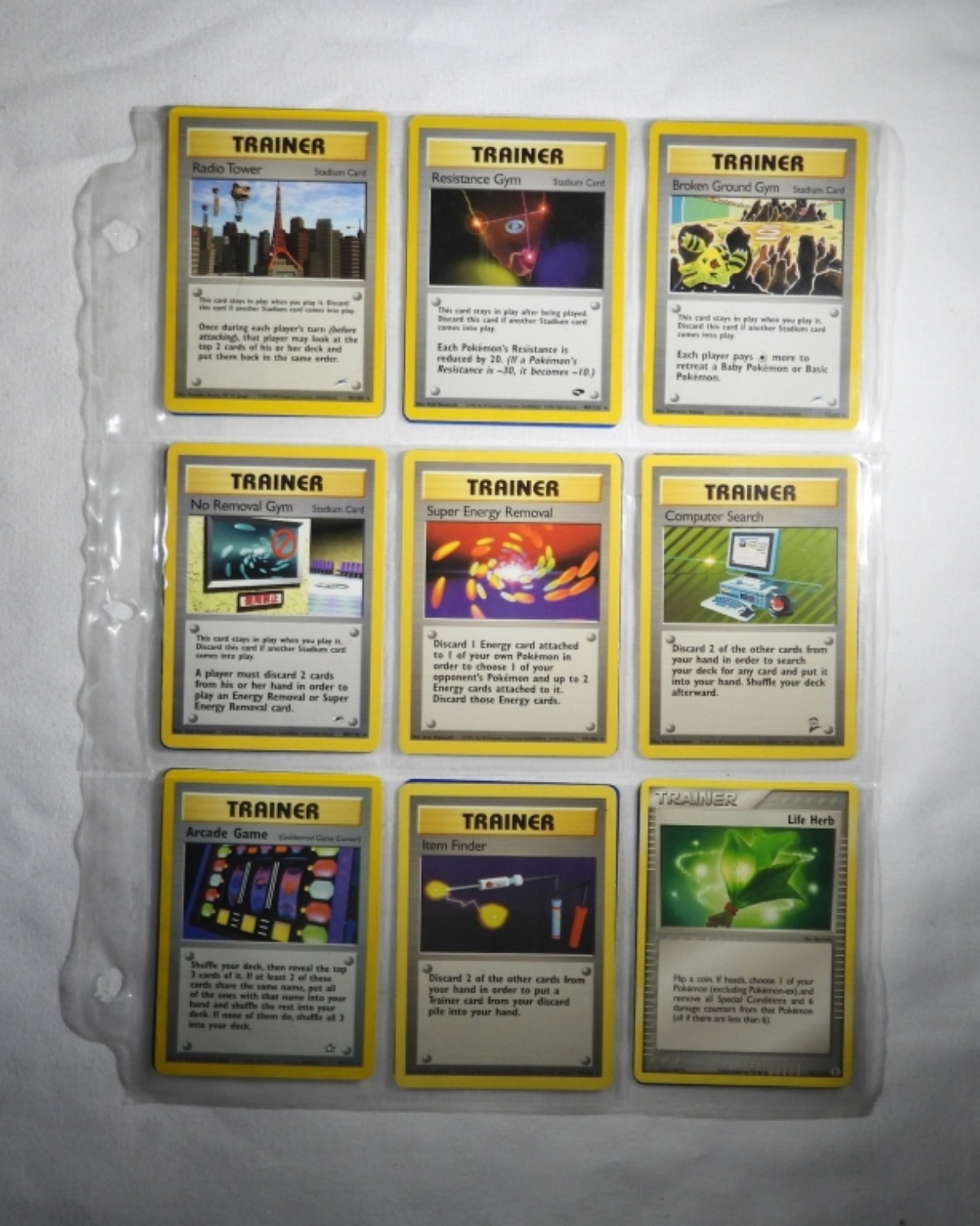 54 VINTAGE POKEMON CARDS. ALL ARE EITHER TRAINER CARDS OR OR ENERGY CARDS. MOST IN NM/M CONDITION. IN PLASTIC SLEEVES.