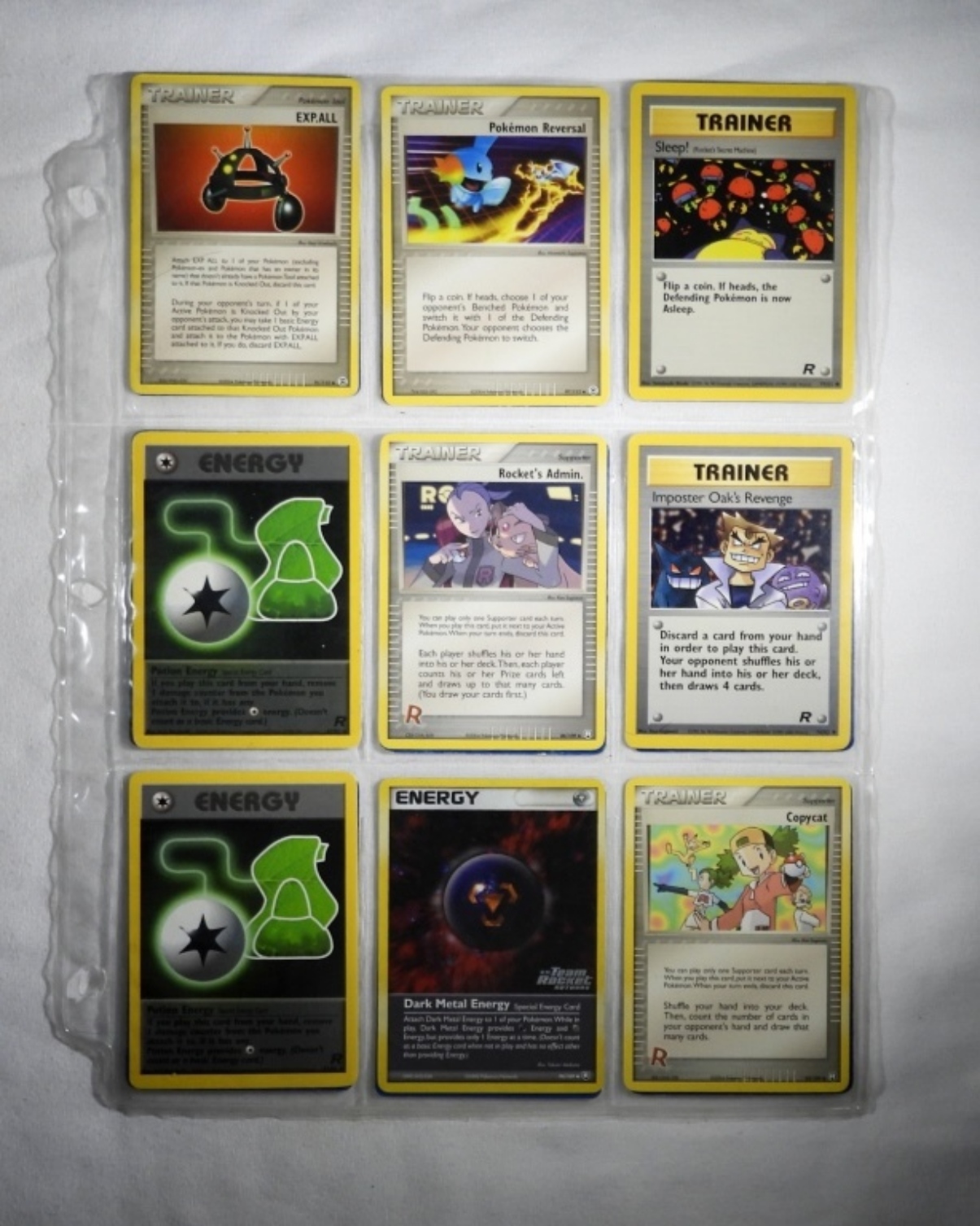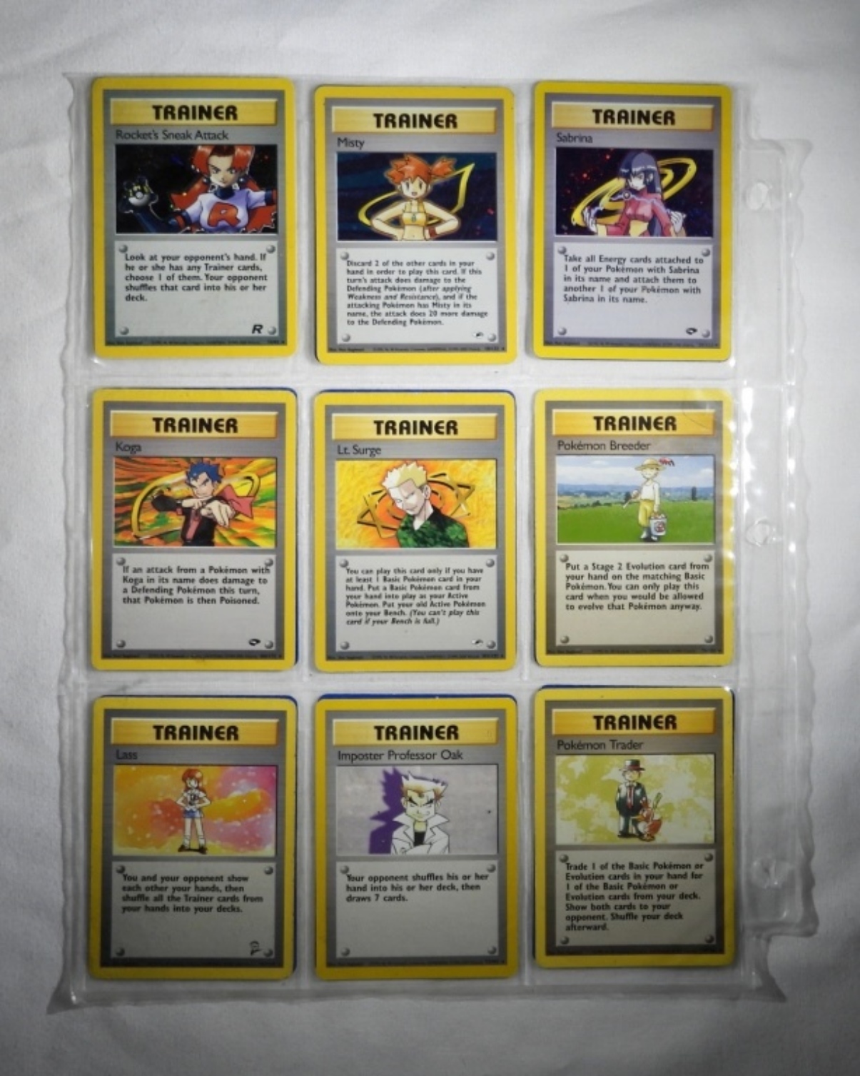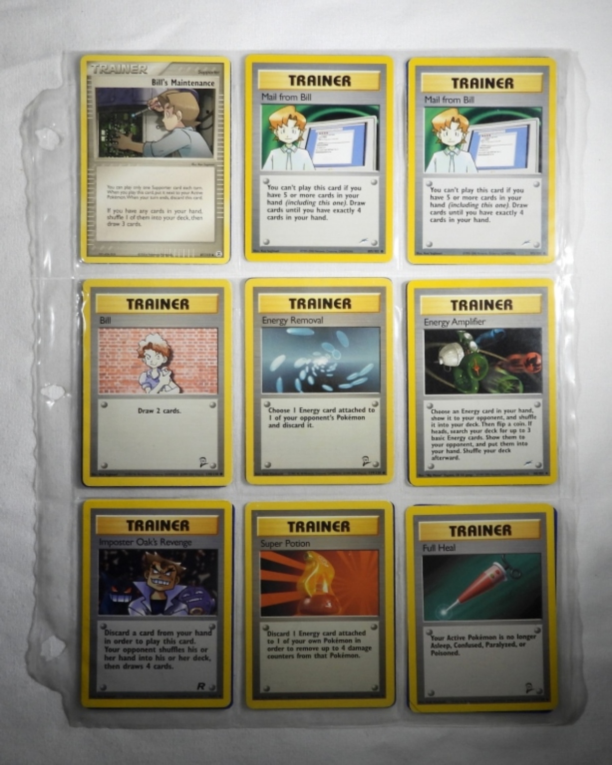 54 VINTAGE POKEMON CARDS. ALL ARE EITHER TRAINER CARDS OR OR ENERGY CARDS. MOST IN NM/M CONDITION. IN PLASTIC SLEEVES.