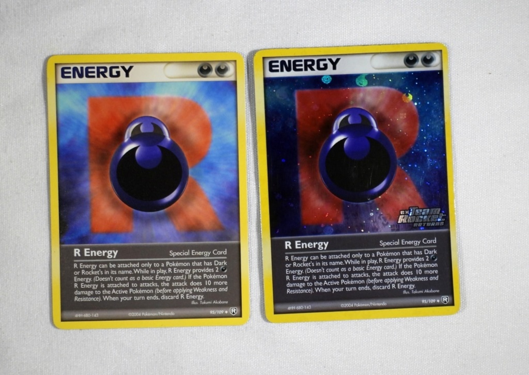 R ENERGY TEAM ROCKET RETURNS, REVERSE HOLO CARD, 2004 95/109 AND SAME CARD, PLAIN. BOTH IN NM/M CONDITION!