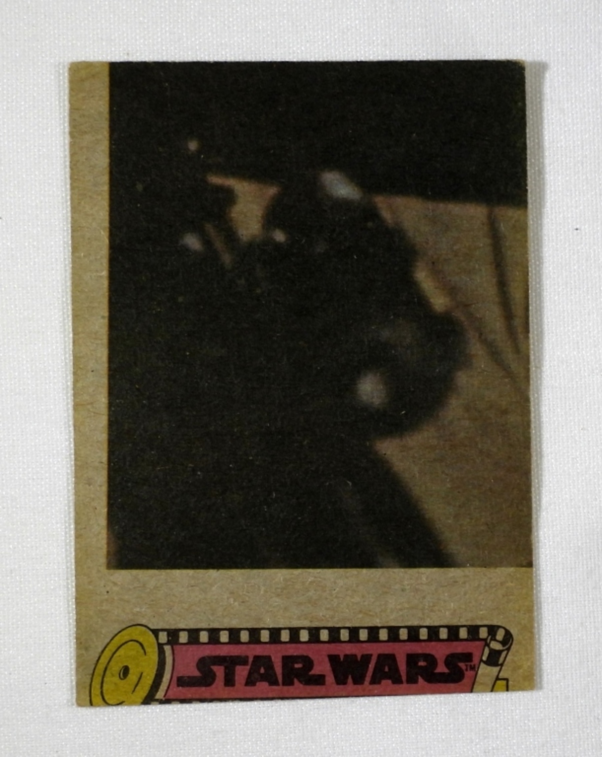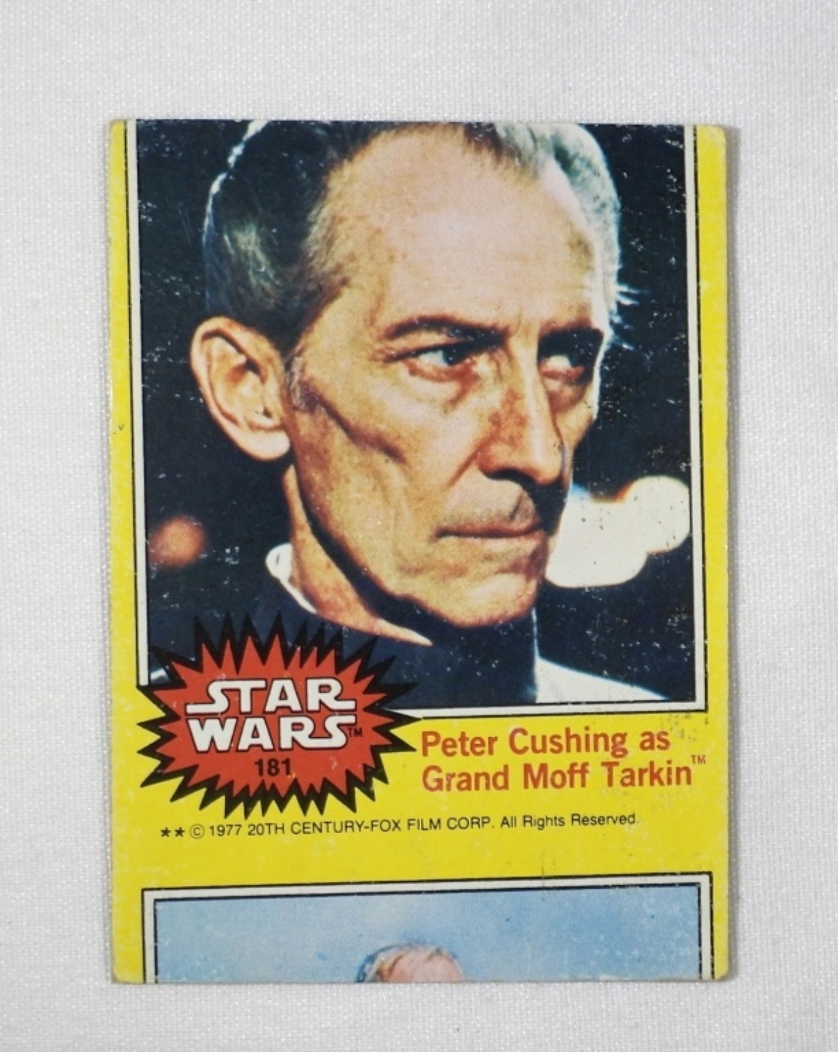 STAR WARS 1977 CARD#181 “PETER CUSHING AS GRAND MOFF TARKIN”. MISCUT / ERROR CARD. ROUNDED EDGES, WELL LOVED CARD.